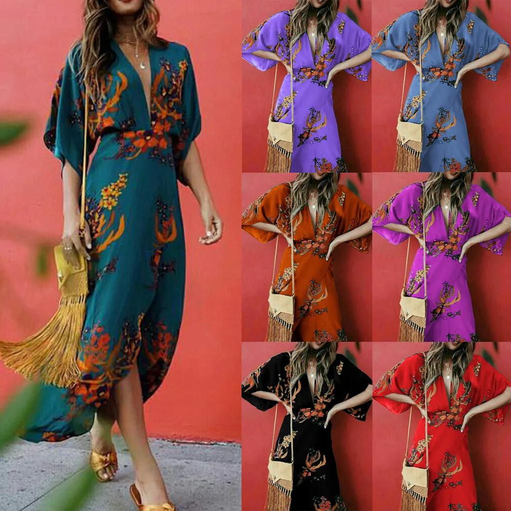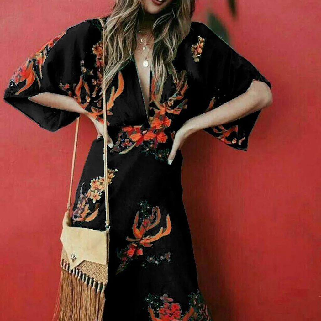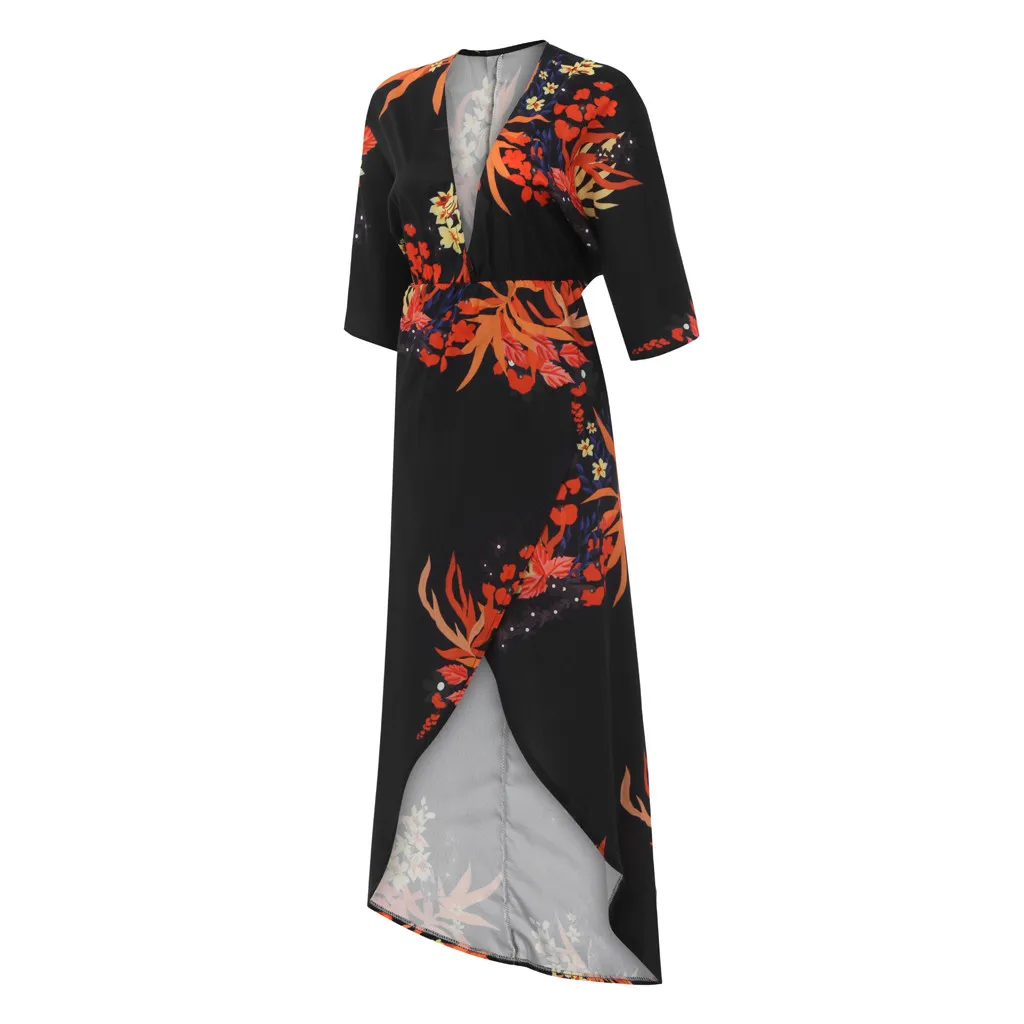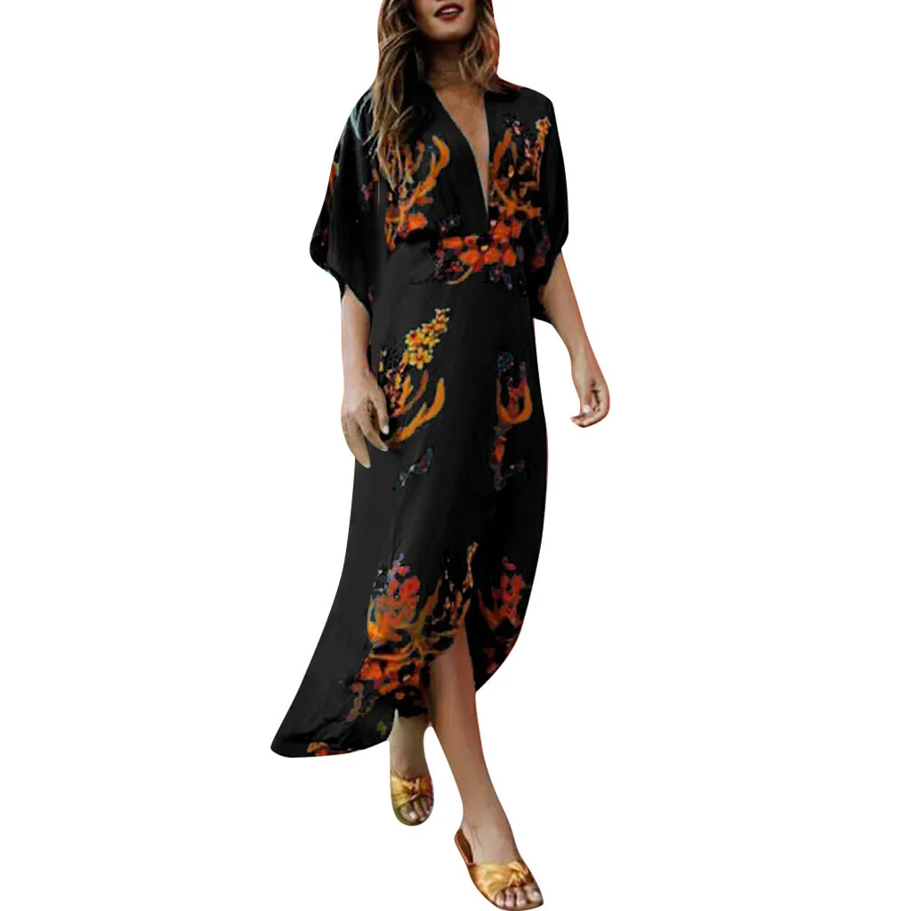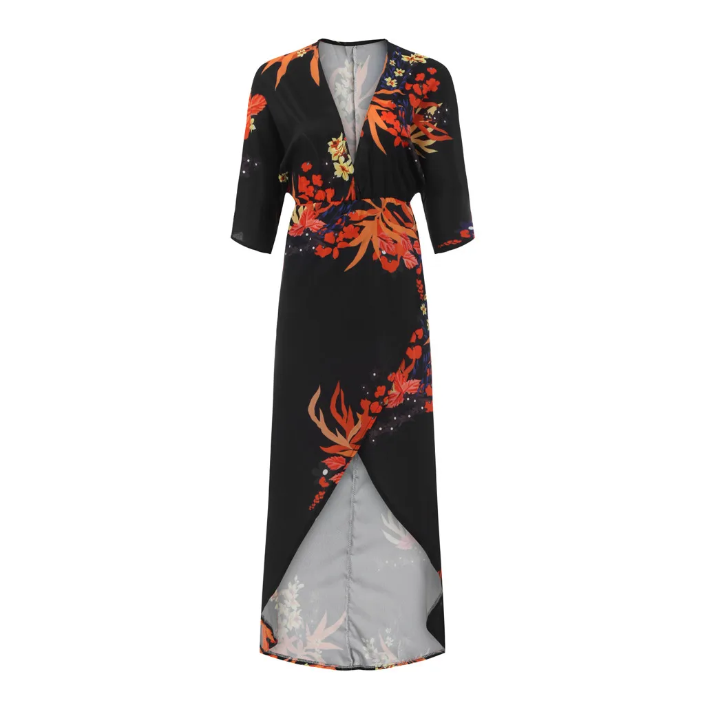Модное женское сексуальное длинное платье с глубоким v-образным вырезом и разрезом