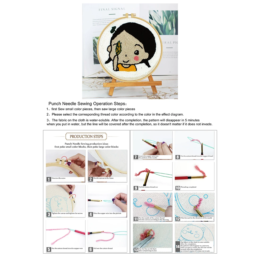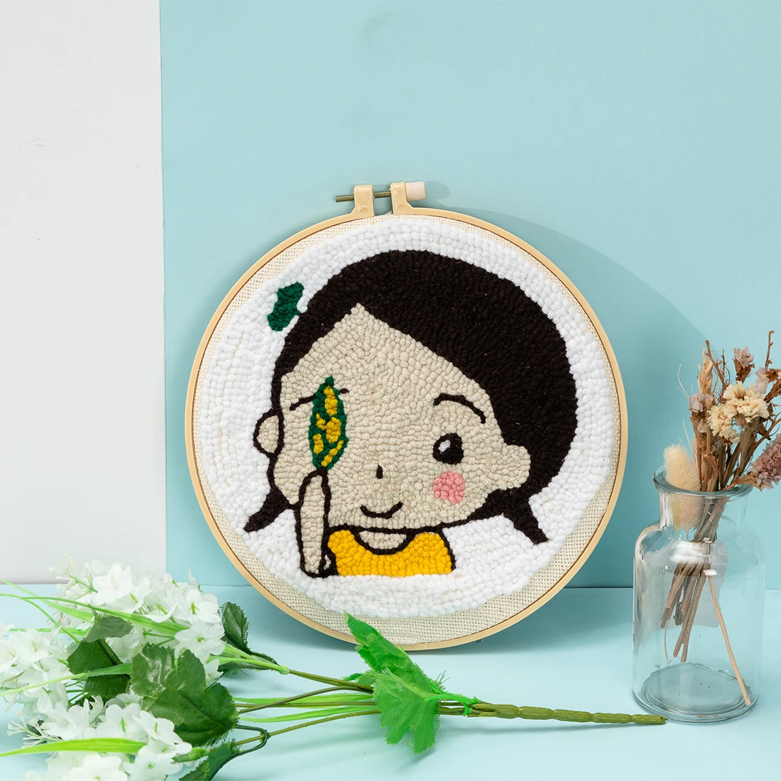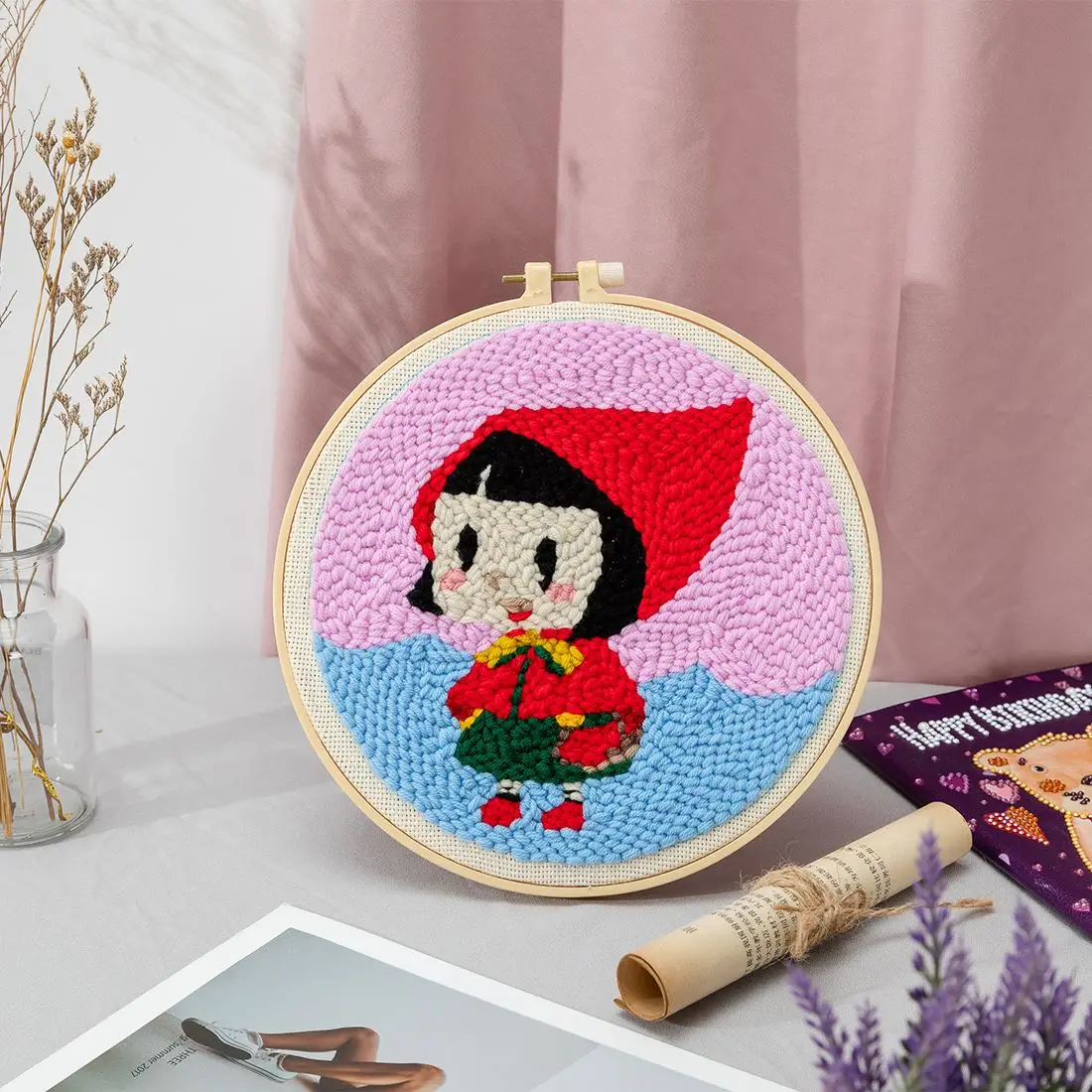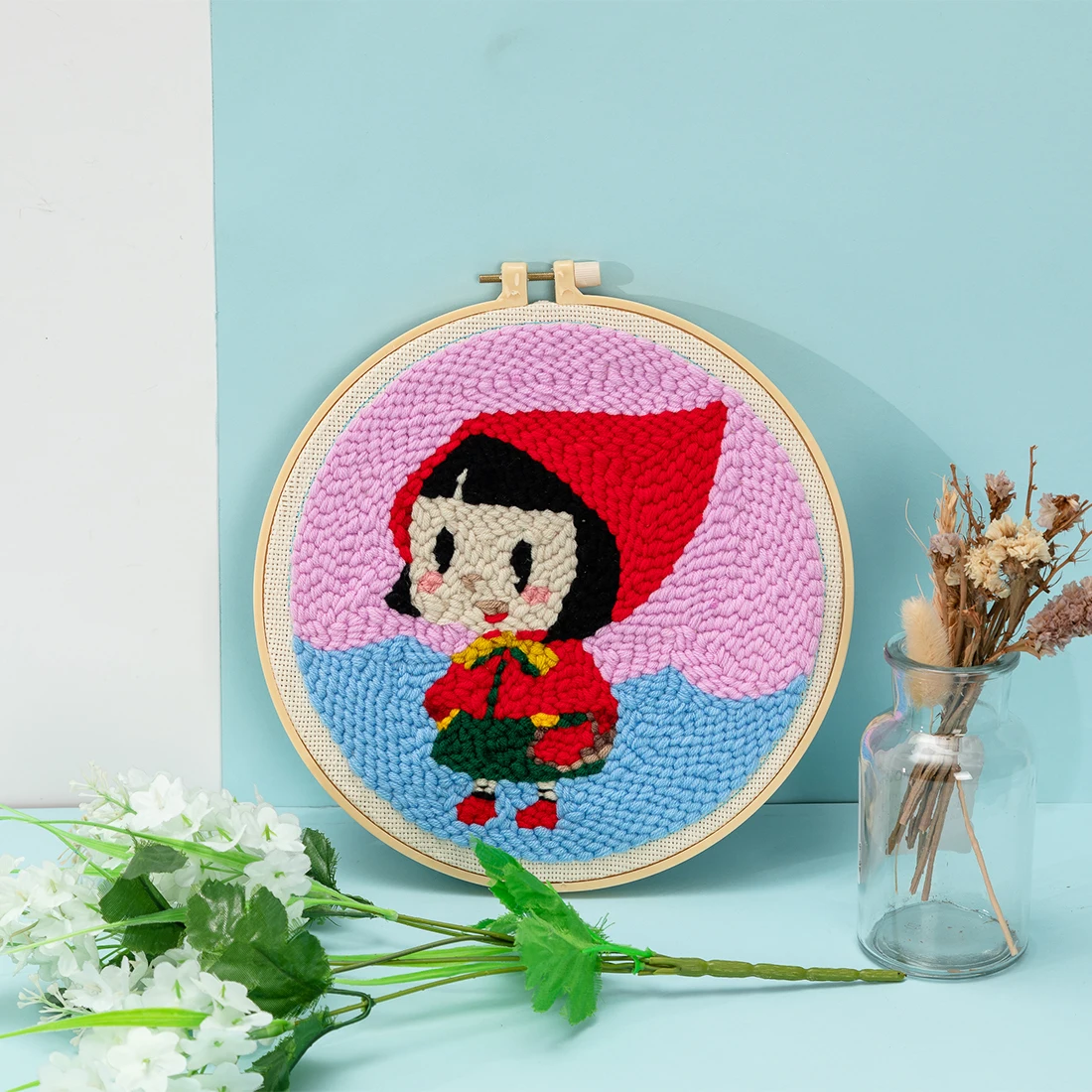 Вязаный шерстяной ковер «сделай сам», комплект для худи, ручная работа, шерстяная вышивка, креативный подарок с иглами для пробивки оправы 21 см-маленькая девочка/красная шляпа