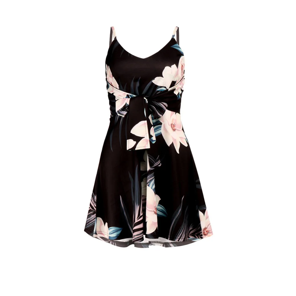 Сексуальное женское платье с цветочным принтом и открытой спиной, Бандажное мини-платье с глубоким v-образным вырезом, вечерние платья