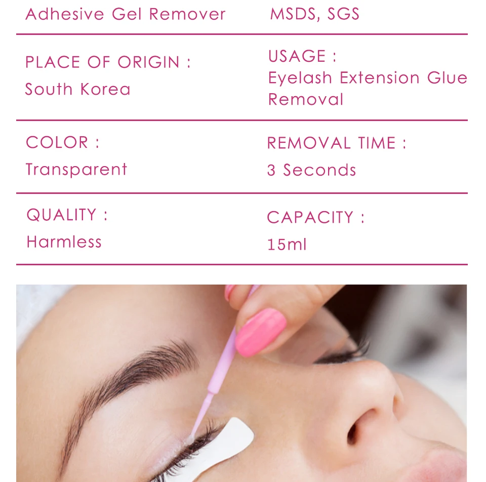 apply small amout of eyelash adhesive remover onto 2 micro swabs, place one micro swab underneath the lashes, and one on top of the lashes,gently coat all extensions.