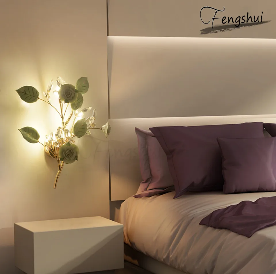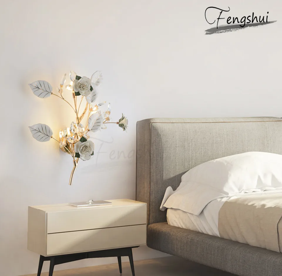 Постмодерн простой керамический цветок декоративный настенный светильник освещение романтическая и теплая спальня прикроватные бра Лофт коридор светильники