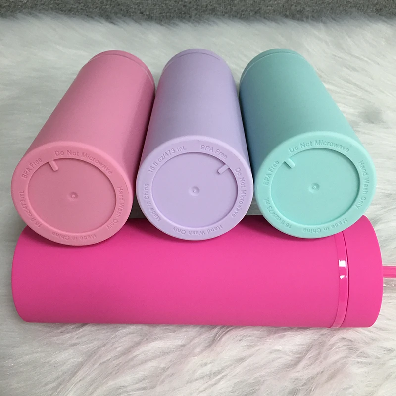 16 унций Тощий стакан с соломой и крышкой акриловая чашка Изолированная многоразовая модная чашка вечерние подарочные Автомобильные стаканы Прямая поставка