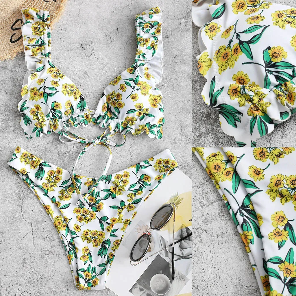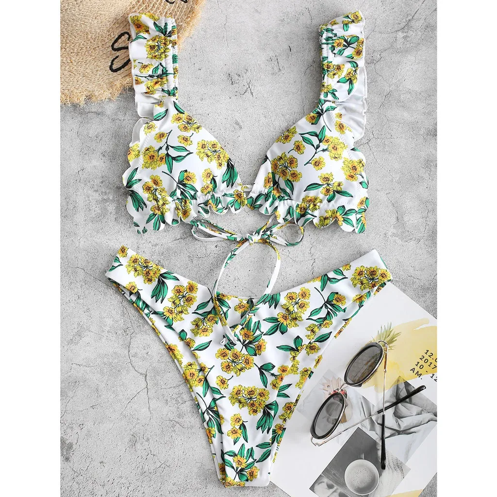 4. Цветочный принт, подол с оборками, милый и милый, Делает привлекательный и потрясающий вид, делает вас соблазнительными среди толпы.