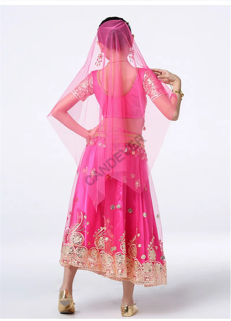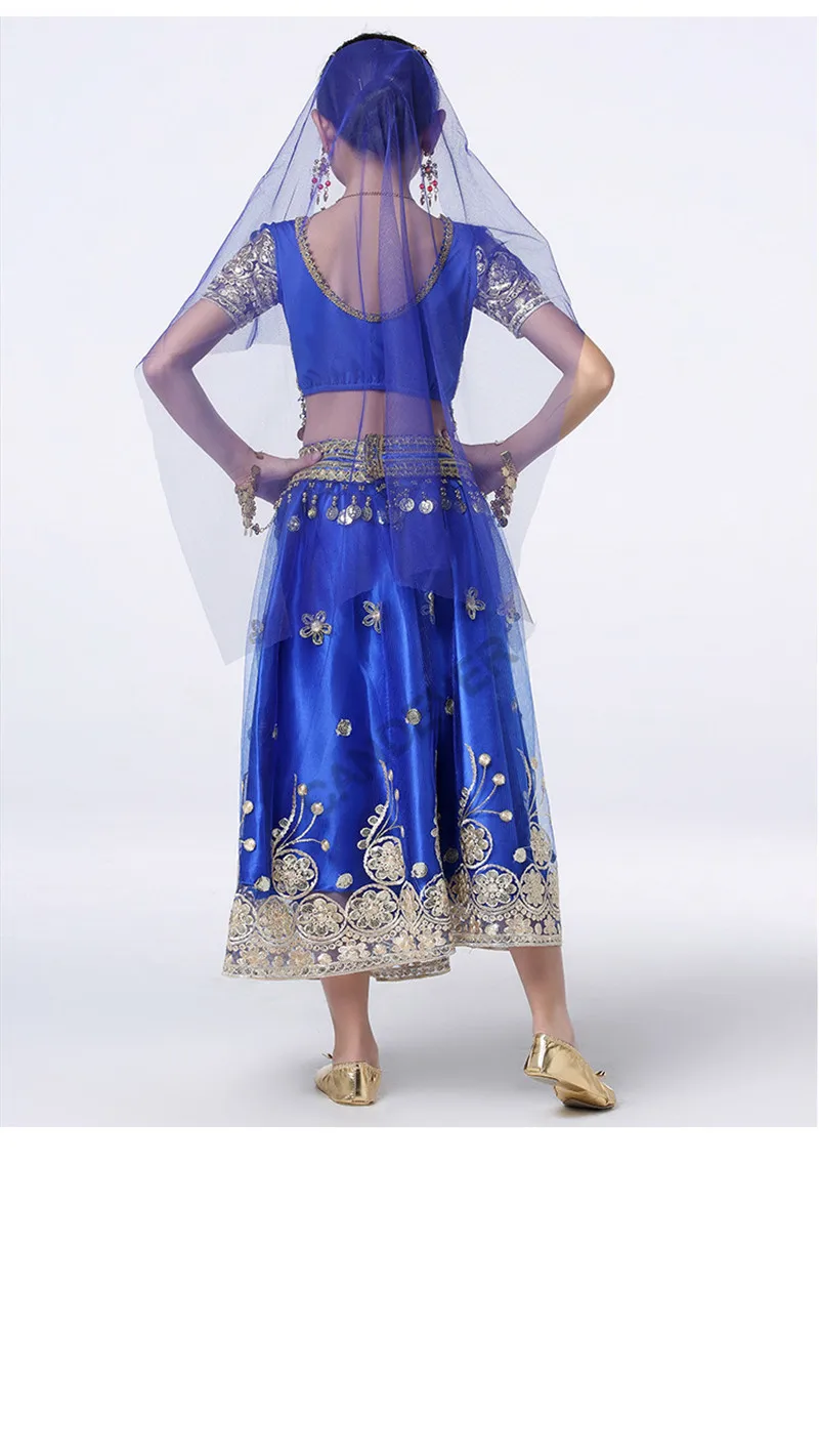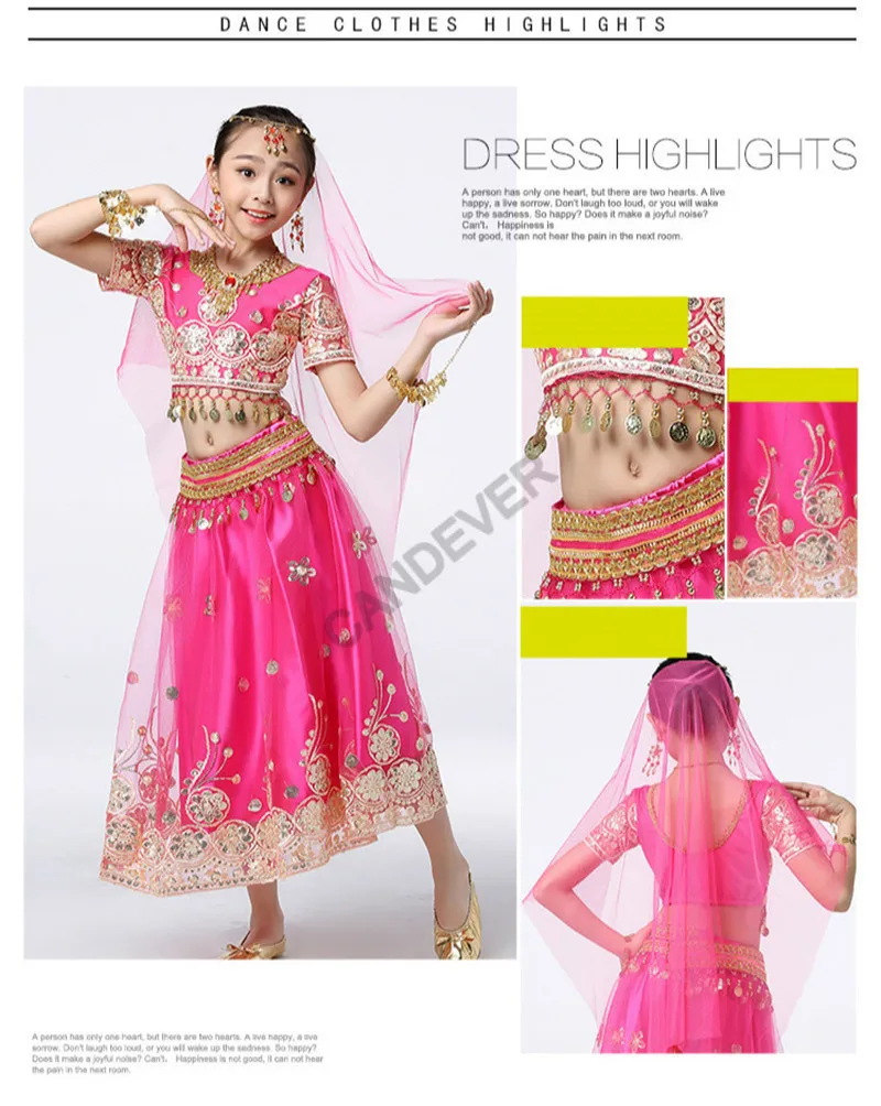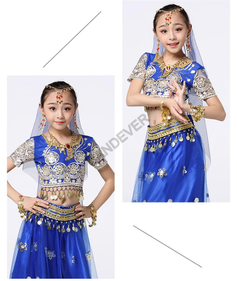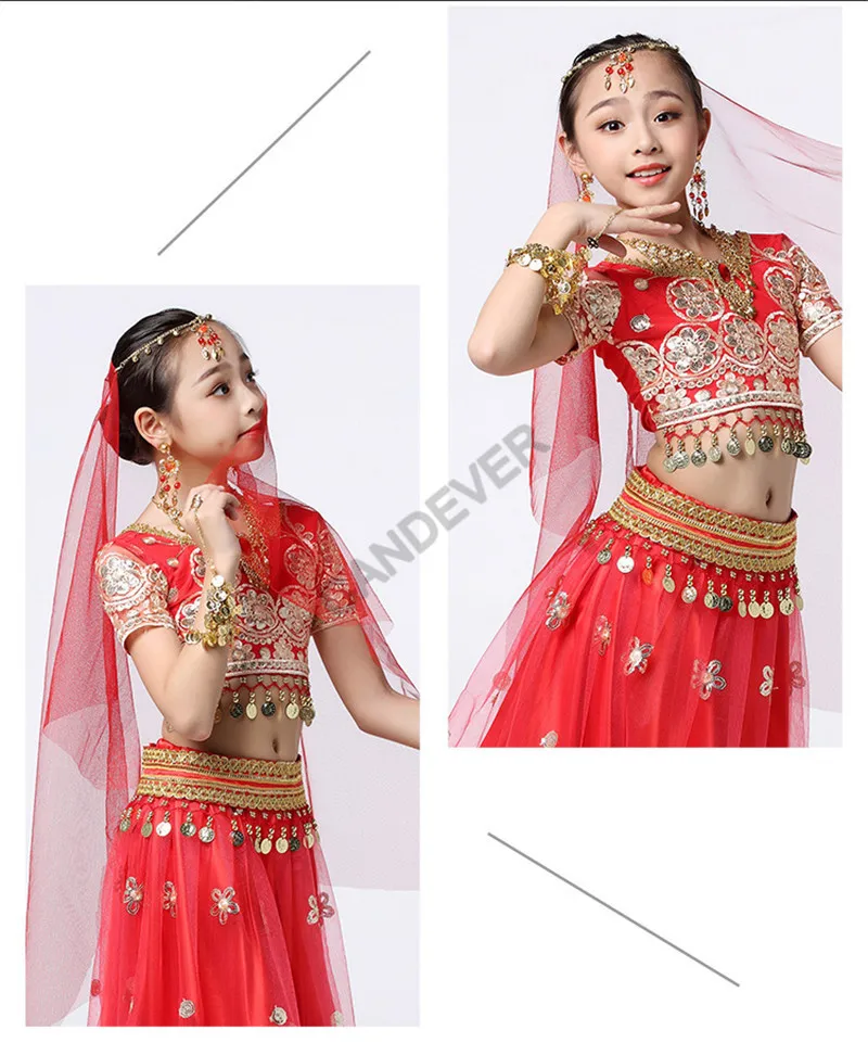Танцевальный Костюм Болливуда для девочек, Детский комплект для танца живота, индийское сари, детский шифоновый наряд, топ на Хэллоуин, юбка с поясом, вуаль, головной убор