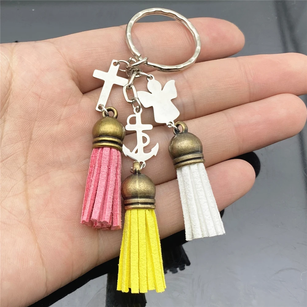 Pray For Safe Sailing keyring handmake Tassel keychain Angel Anchor key Holder Jewelry Findings Best Wish AS Gift