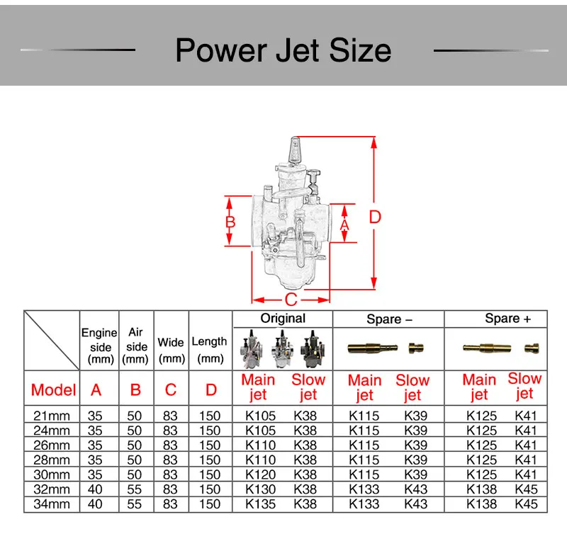 Универсальные модификации Более быстрый разгон Экономит топливо Лучшее послепродажное обслуживание Технические характеристики: Бренд: ZSDTRP PWK Производители: по всему миру Модель: все модели Год: все годы Стиль: плоский карбюратор серии TM Цвет: серебристый, серый Размеры: 21 мм: от 50 до 100 куб. См двигатель 24 мм: от 50 до 100 куб. См 26 мм: от 75 до 125 куб. См 28 мм: от 75 до 125 куб. См 30 мм: от 100cc до 150cc двигатель 32 мм: от 125 до 200 куб. См 34 мм: от 125 до 250 куб. См Примечания: 1) Подходит для двигателей Type B 2T 4T,Type A Type Y 4T 50cc до 1000cc (универсальные цилиндрические двигатели 1/2/4) 2) Keihin Koso и ZSDTRP являются одними и теми же моделями, только карбюратор тела брендинга отличается. 3) Вы можете приобрести карбюратор на 50 куб. См выше или ниже, чем ваш оригинальный, для экономии газа и быстрой езды. 4) вы можете выбрать необходимый размер и название тела. 5) Заменяет имеющийся карбюратор, просто заменяйте и катайте снова. Дайте вашей машине новую мощность и крутящий момент, который он действительно заслуживает, и Веселитесь с питанием на кончиках пальцев.