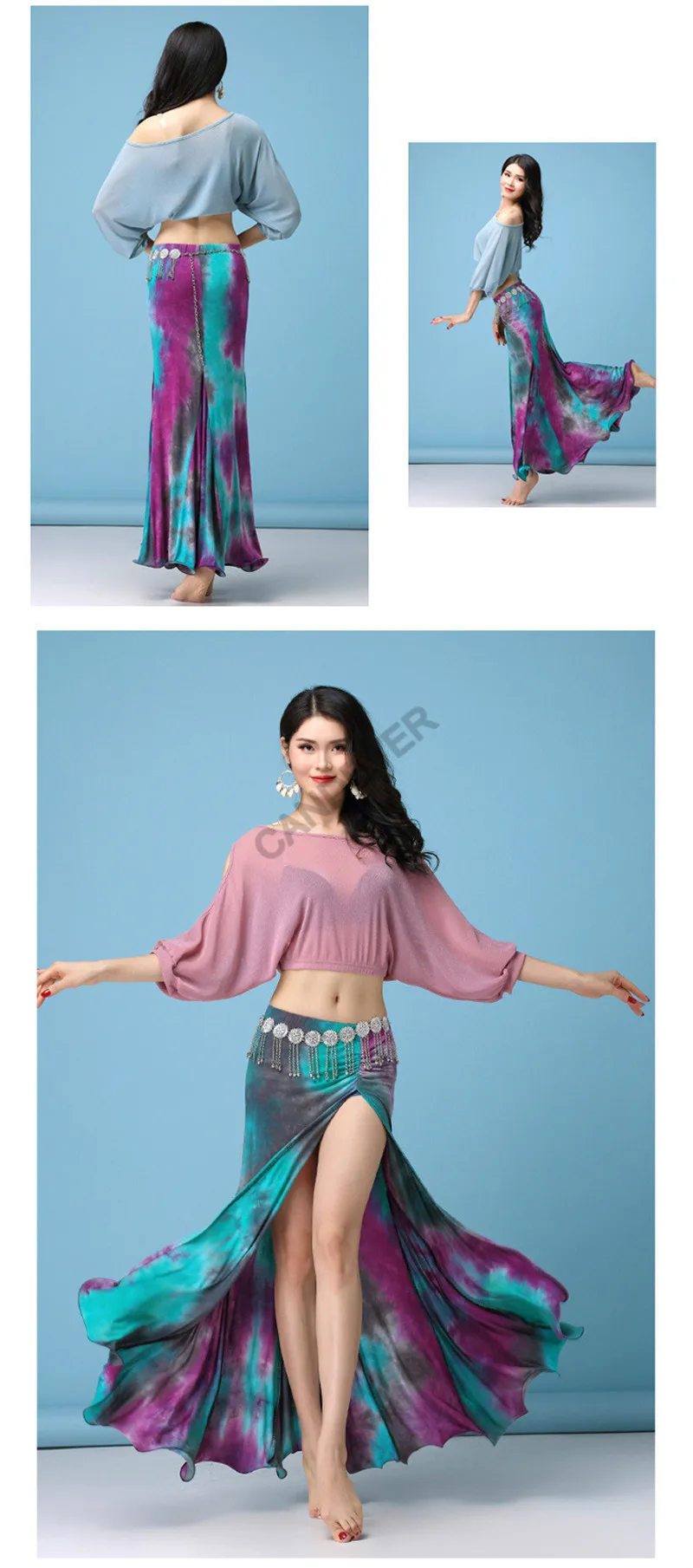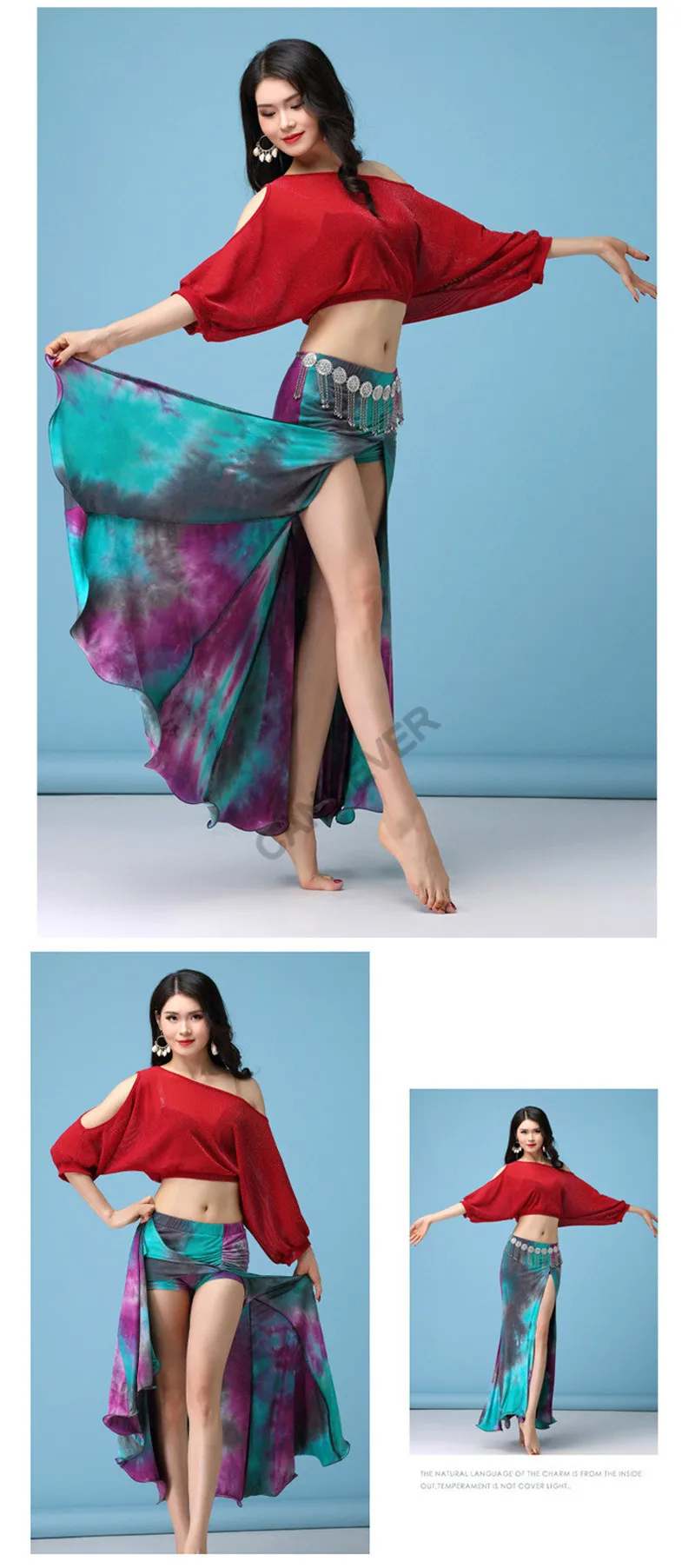 Новое поступление, женская танцевальная одежда для танца живота, одежда из спандекса, костюм для девочек, тренировочная одежда для танца живота, топ, юбки, хип-шарф, костюм