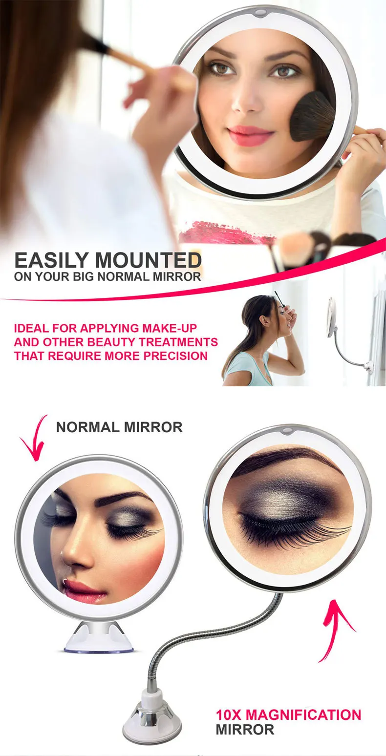 Описание продукта: Новое обновление! Не жалейте о сломанном зеркале! Для получения подробной информации см. Видео! Это зеркало достаточно велико, чтобы использовать его для макияжа и стайлинга, с прекрасным теплым светодиодный светильник, чтобы обеспечить естественный светильник, который вам нужен, чтобы выглядеть лучше; Увеличение достаточно мощное, чтобы использоваться для подводки для глаз, тушь для ресниц, бровей и нежелательная Чистка волос. Ресурсы -Белый цвет. -Материал: АБС-пластик, PS. -Диаметр: 17,5 см/7 дюймов. -Требуется три батарейки AA (не входят в комплект). -Натуральный мех енота теплое светодиодный светильник: длительный ресурс работы светильник светодиодный s, что последние 50000 часов и сообщим вам наиболее точный естественный светильник в этом разделе вы найдете в течение всего дня. -Увеличение 7x: идеальное увеличение, которое позволяет видеть все лицо в зеркале. -Гибкий Кронштейн и всасывание: вращается на 360 ° с регулируемыми углами, позволяя вам располагать зеркало ближе к вам по сравнению с другими зеркала для макияжа. -Беспроводное/беспроводное и складное: зеркало складывается над присоской, занимает менее одного квадратного метра пространства, что также делает его идеальным зеркалом для путешествий. Увеличивают всасывание стакан на присоске: 1. Протрите стены влажным полотенцем или в любой другой влажной в стакан на присоске перед использованием. 2. Нанесите яичный белок на поверхности стакан на присоске Упаковочный лист 1 * регулируемый светодиодный зеркало для макияжа с увеличением, зеркало для путешествий (белый)