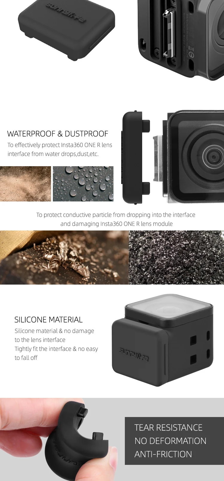 -Функция: для защиты интерфейса, где Модуль объектива и экшн-камера соединяются и предотвращают окисление и короткое замыкание