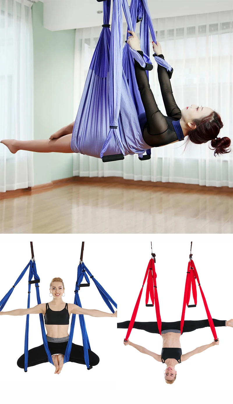 Аксессуары: 1 гамак для йоги, 2 гамака с ручкой (6 длинных коротких ручек), 24 * Регулируемая пряжка, 4 * карабин, 1 * сумка для хранения