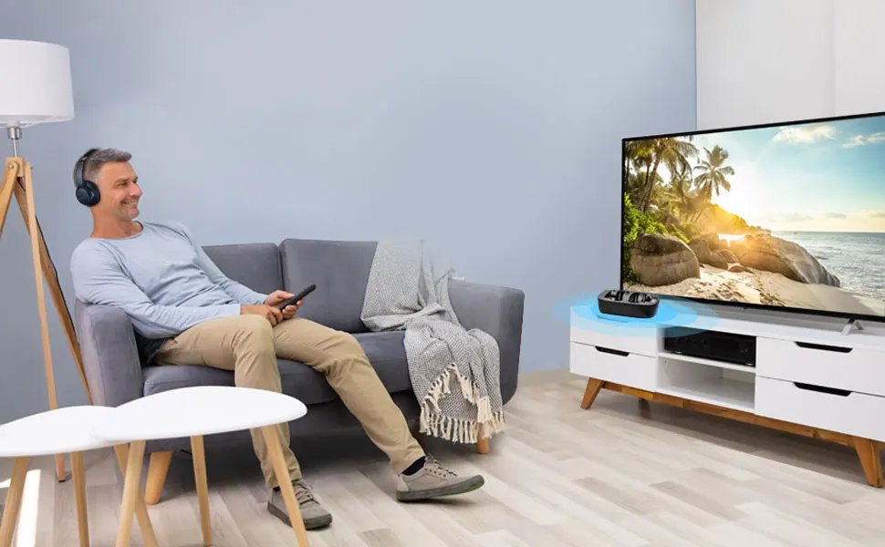 Набор наушников и передатчиков Plug & Play Bluetooth 5,0 (с оптической поддержкой) для просмотра ТВ, с зарядной базой и передатчиком 2-в-1