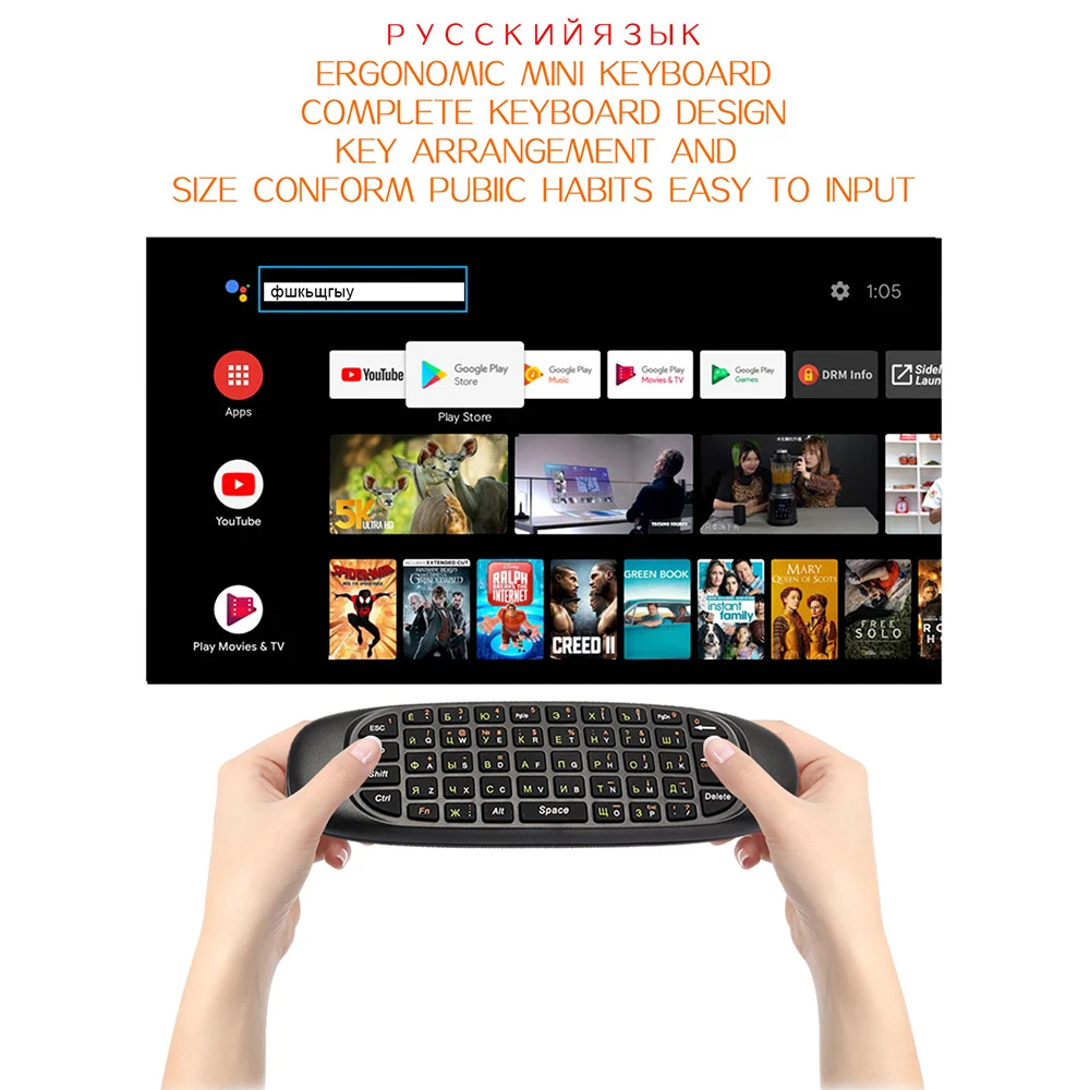 Спецификация: Особенности продукта: 2,4 ГГц беспроводной пульт дистанционного управления + Воздушная мышь Встроенная аккумуляторная батарея Двойной размер, авто гироскоп Рабочее расстояние: 15 м Ключ: 11 клавиш + 36 клавиш Материал: Силиконовый ключ + пластиковый корпус Цвет: черный Применение: для ПК, планшетных ПК, HTPC, IPTV, веб-ТВ, Smart TV, Google TV, Android TV Box/Stick, Бытовая техника, мультимедийные устройства и т. Д. Операционная система: Windows 2000, XP, Vista ,Windows CE,Windows 7 Linux(Debian-3.1,Redhat-9.0 Ubuntu-8.10 Fedora-7,0 протестирован) ОС Android (со стандартным интерфейсом USB)
