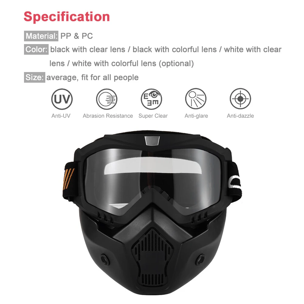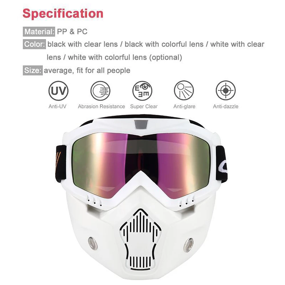 Mortorcycle маска Съемные очки и рот фильтр для открытого лица шлем мотокросса Лыжный Сноуборд.