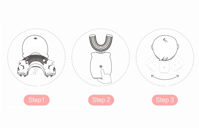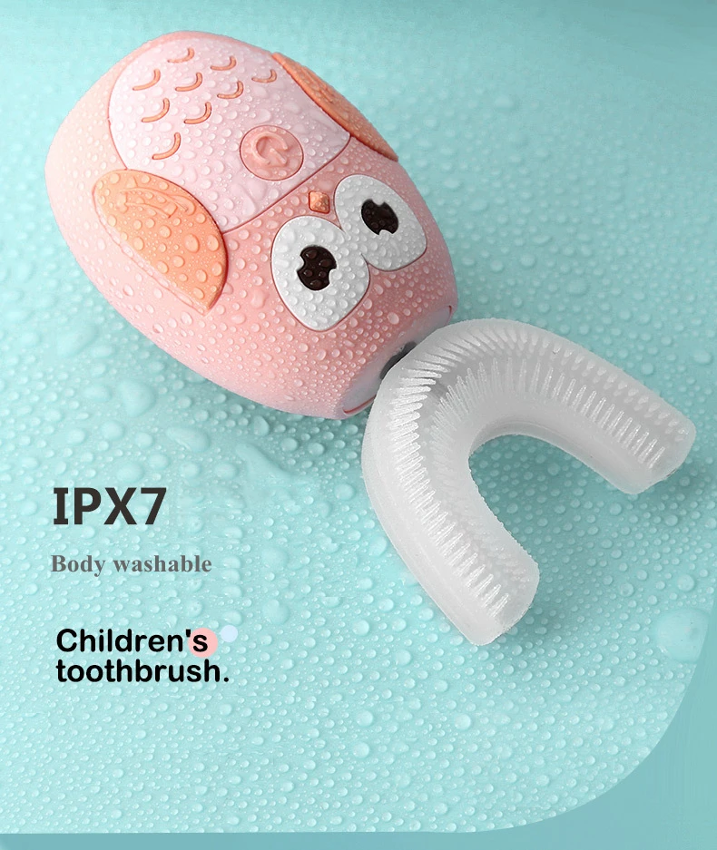 В этом продукте используется Насадка-щетка из пищевого силикона, которая является мягкой и безопасной. U-образная головка щетки может очистить зубы на 360 градусов и больше ухаживать за зубами ребенка.