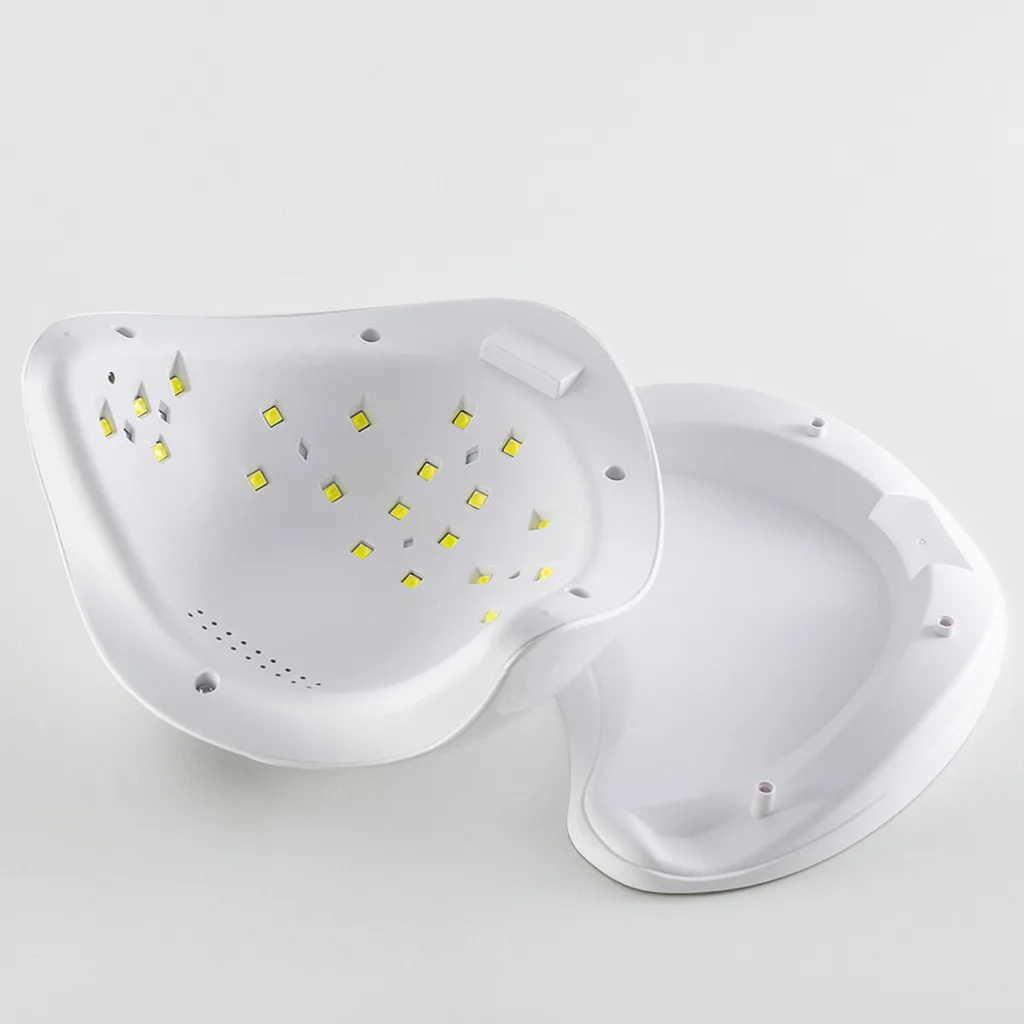 Отличный идеальный вариант для домашнего и салонного использования. В светильник излучаемый этой лампы для ногтей, ближе к белому цвету светильник, так как материал не наносит вреда глазам или коже