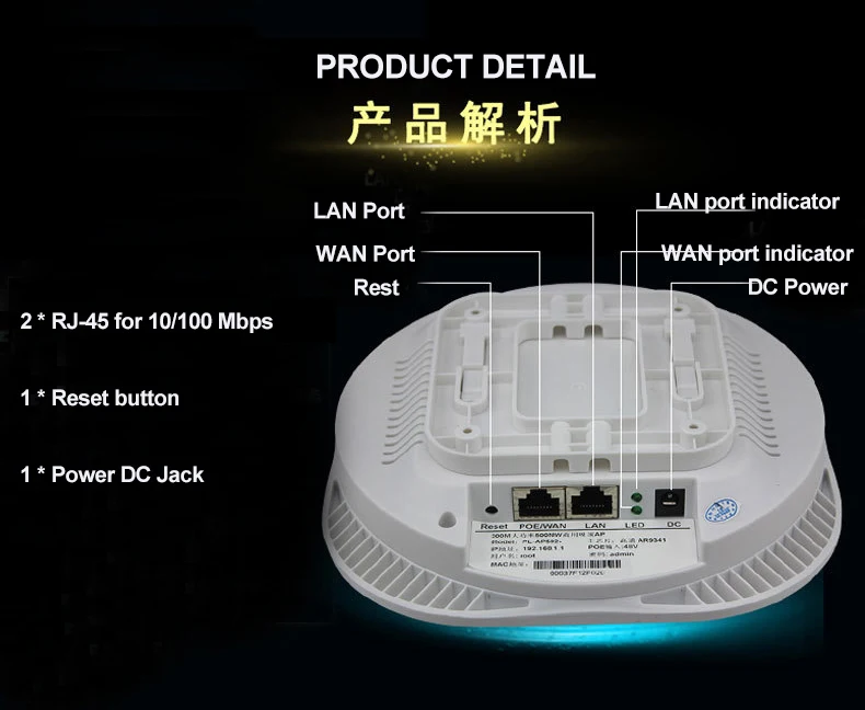 1. Эта Крытая потолочная точка доступа в основном используется в точках доступа Wi-Fi, которые предназначены для покрытия беспроводных комнат в гостиницах, кафе, аэропортах, школах, предприятий и т. Д.