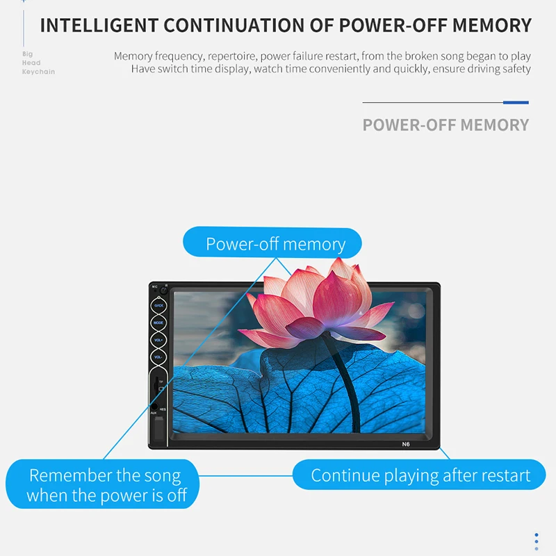 Функция воспроизведения памяти песни, воспроизведение в папках, классификация хранилища, бесплатное вещание, список дисплеев. Поддерживает воспроизведение в случайном порядке, Повтор всех треков, повтор одного трека, Повтор папки. Интерфейс аудиовхода AUX может быть для MP3, GPS, сотовых телефонов, музыкального плеера и других устройств с аудиовходом.