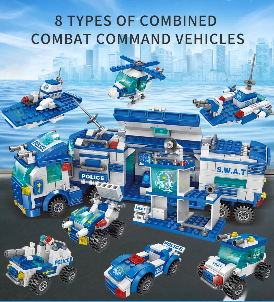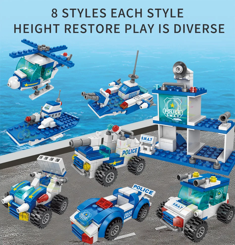 HUIQIBAO SWAT полицейский участок грузовик машина строительные блоки город вертолет автомобиль спецназ фигурки кирпичи развивающие игрушки