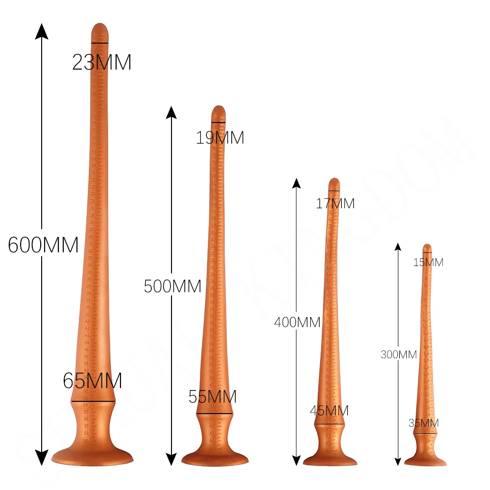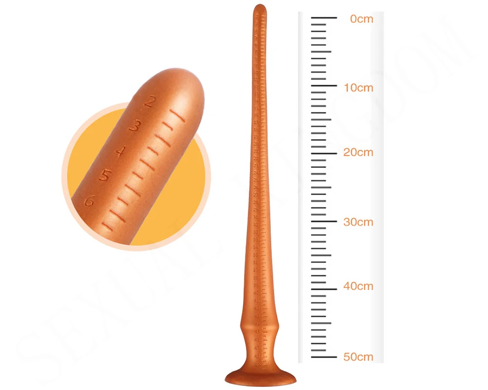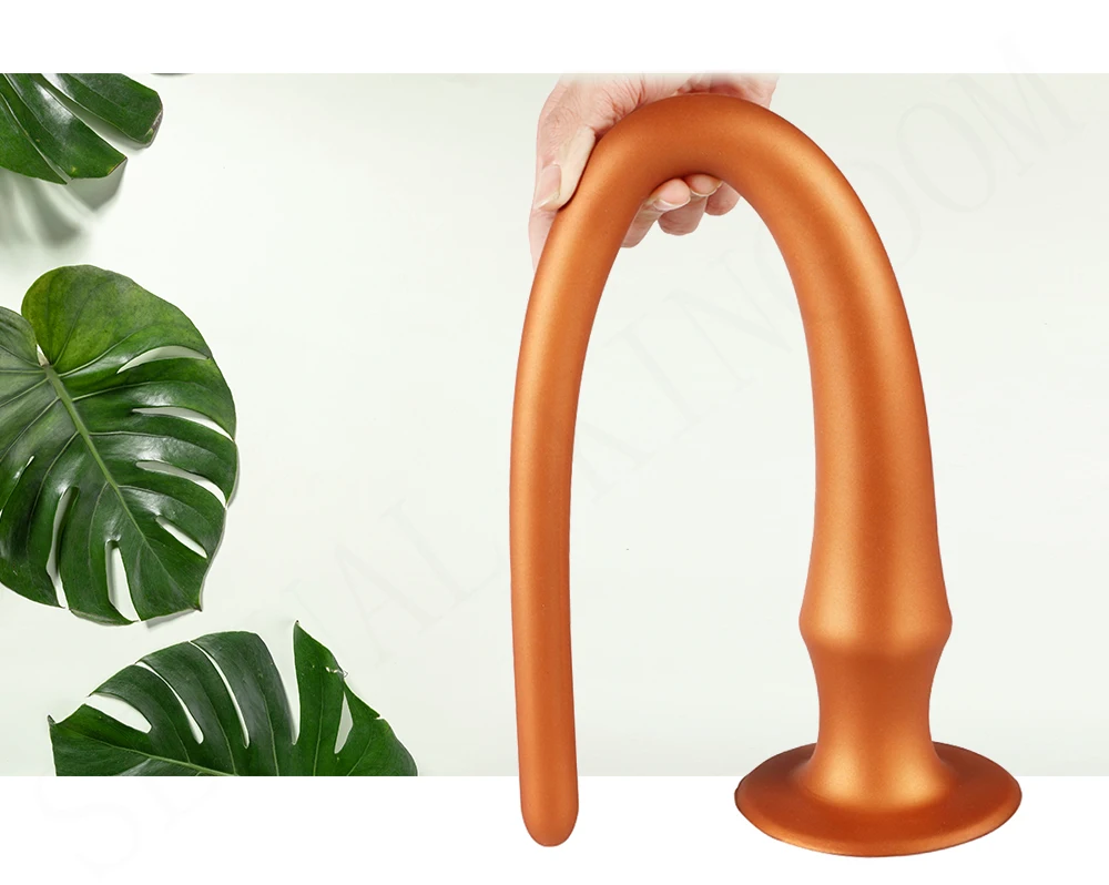 Golden Super Long Anal Plug Powerful Suction Cup Liquid Silicone Butt Plug Prostate Massager Dildo G-Spot Stimulator Sex Toys