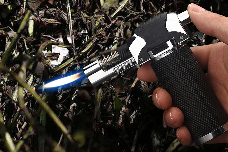 Пистолет-распылитель, фонарь-зажигалка, металлический, без огня, прямой, бутановый, струйный, кухонный турбо-зажигалка для барбекю, для улицы, ветрозащитная Зажигалка для сигар
