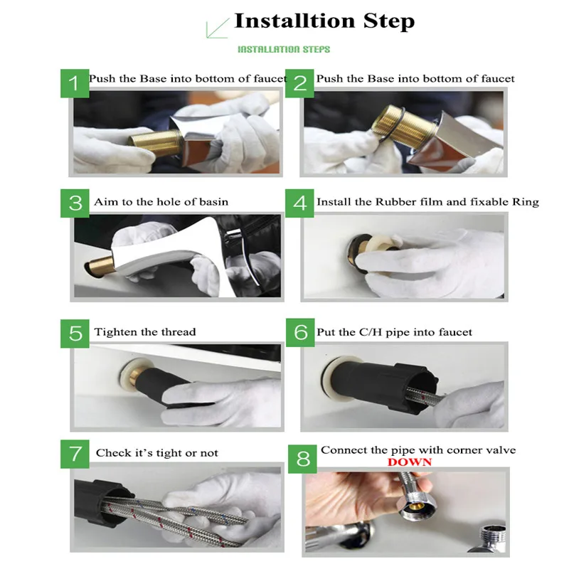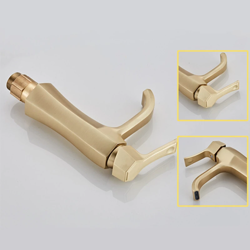 Описание товара Функция: кран для раковины для ванной комнаты Материал: твердая латунь Отделка: черный/Матовый никель/матовый золотой/хром С двумя трубами для горячей и холодной воды Количество ручек: 1 Специальные Особенности; Тихий близко, легко установить