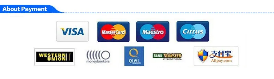 Alalipay, Western Union,Paypal,T/T, все основные кредитные карты принимаются через ESCROW, Payment Оплата должна быть произведена в течение 3 дней для завершения заказа Если вы не можете проверить сразу после закрытия аукциона, пожалуйста, подождите несколько минут и повторите попытку оплаты, и оплата должна быть произведена в течение 3 дней