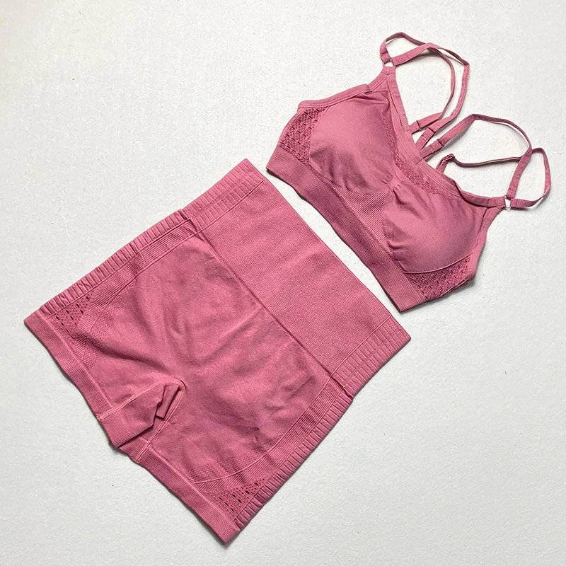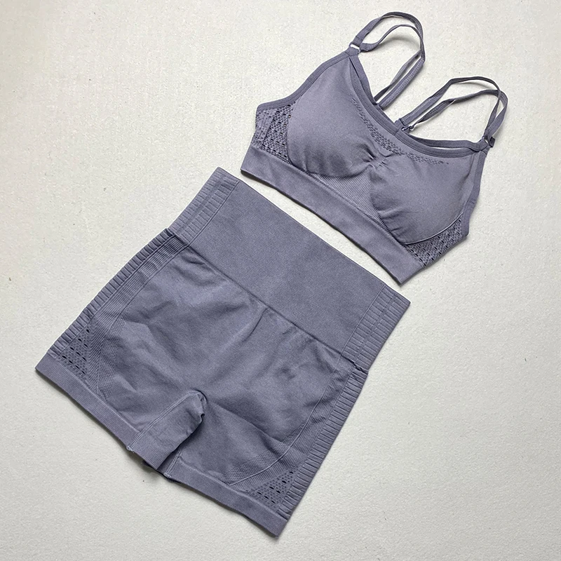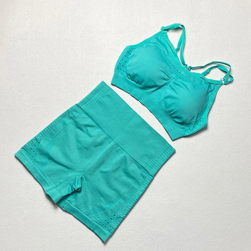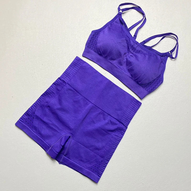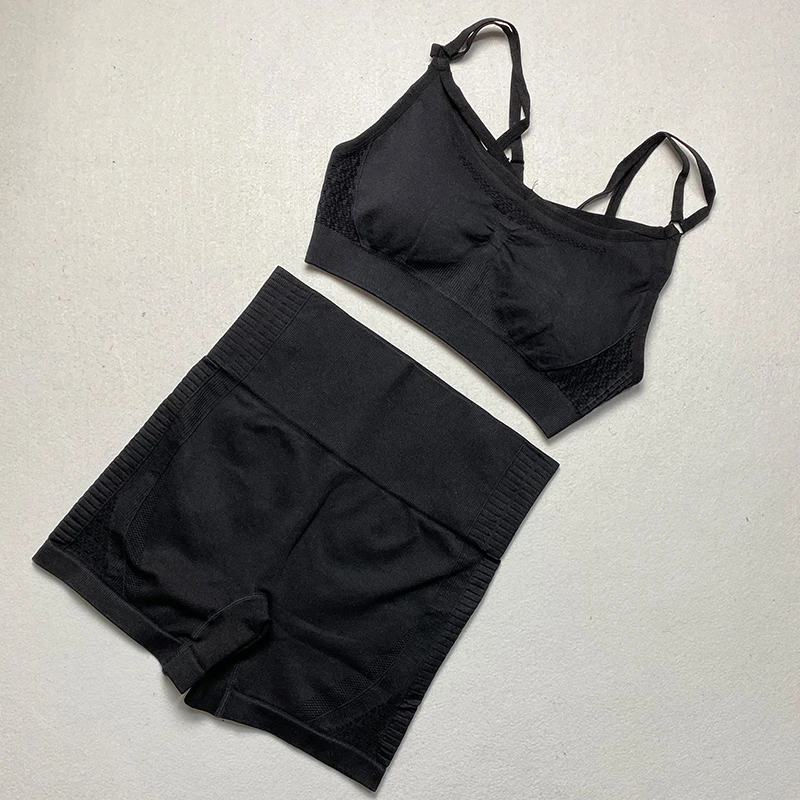 Комплект из двух предметов, шорты для спортзала, Женский энергетический бесшовный короткий комплект, спортивный бюстгальтер на бретелях, высокая талия, шорты для тренировок, женские комплекты одежды для активного отдыха