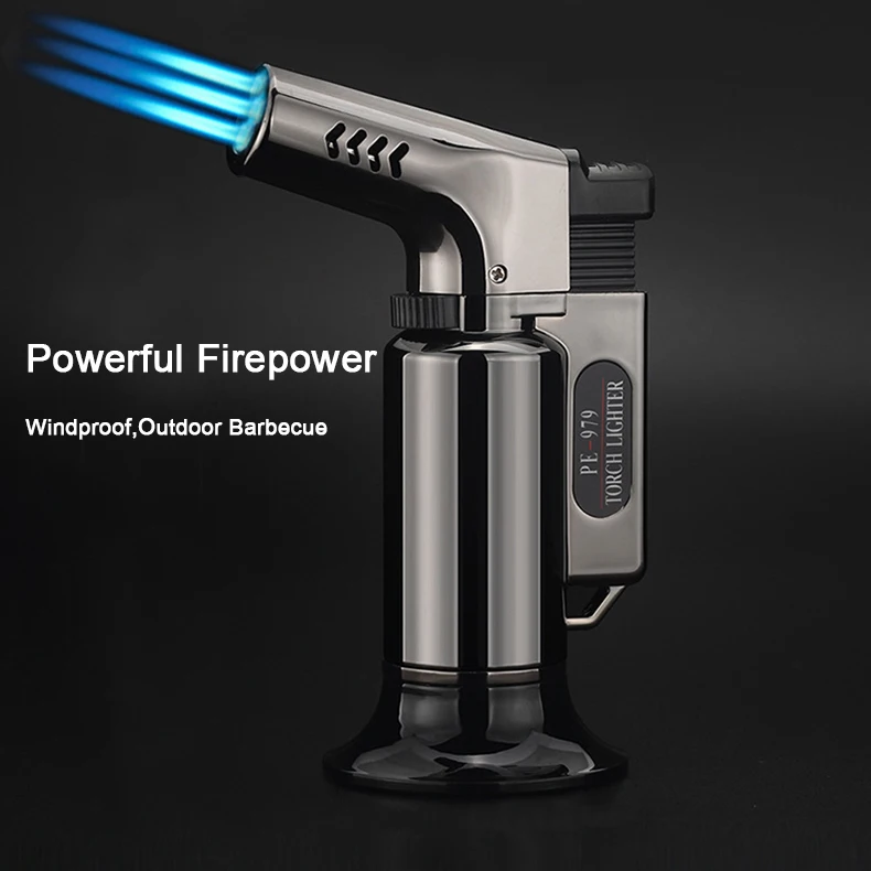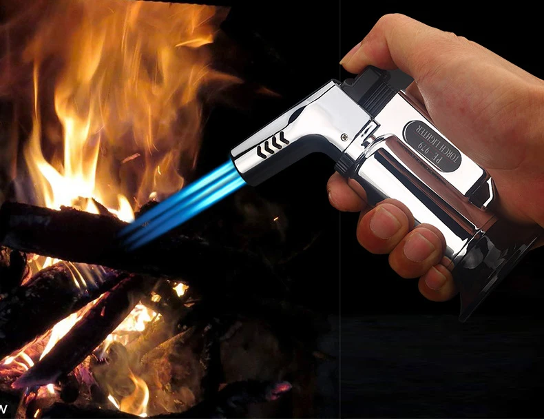 Ветронепроницаемый пистолет реактивный фонарь турбо газ три насадки для барбекю многоразовые газовые бутановые сигары сигареты Трубная Зажигалка для улицы