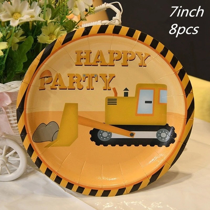 Одноразовый набор посуды, строительные транспортные средства, бумажные коробки для попкорна, снэк-бокс, Детские воздушные шары для душа, украшения для дня рождения