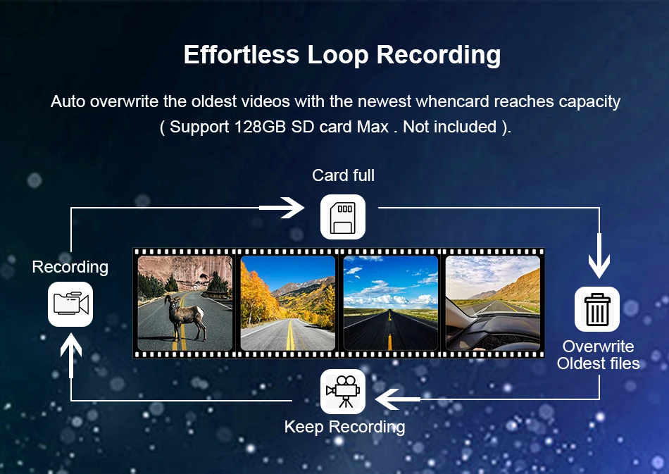 Автоматическое перезапись старейших видео с новейшей, когда карта достигает емкости