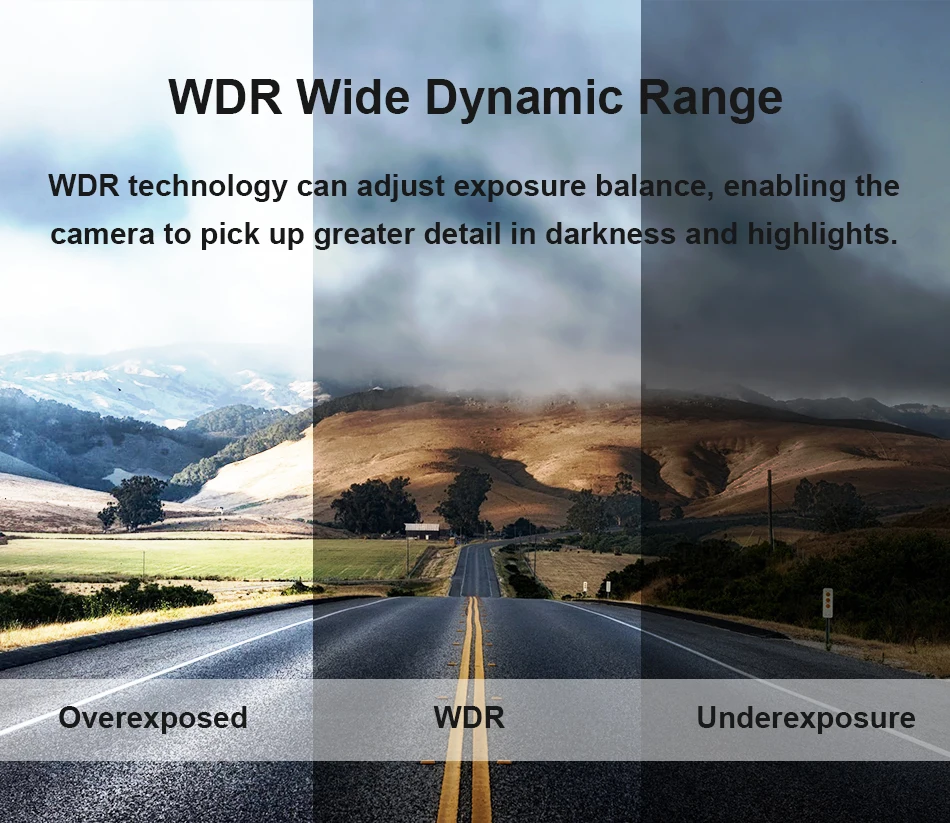 Технология WDR может регулировать баланс экспозиции, позволяя камере находить более подробную информацию в темноте и освещении.