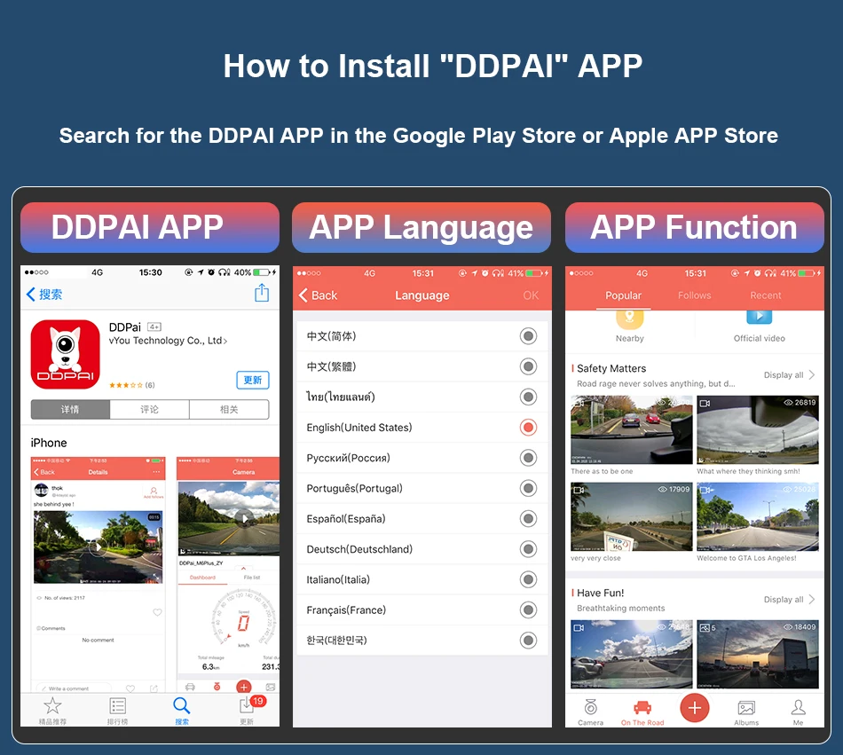 Priew или загрузите записанные видео 2K непосредственно на устройствах ios и android из приложения «DDPAI».
