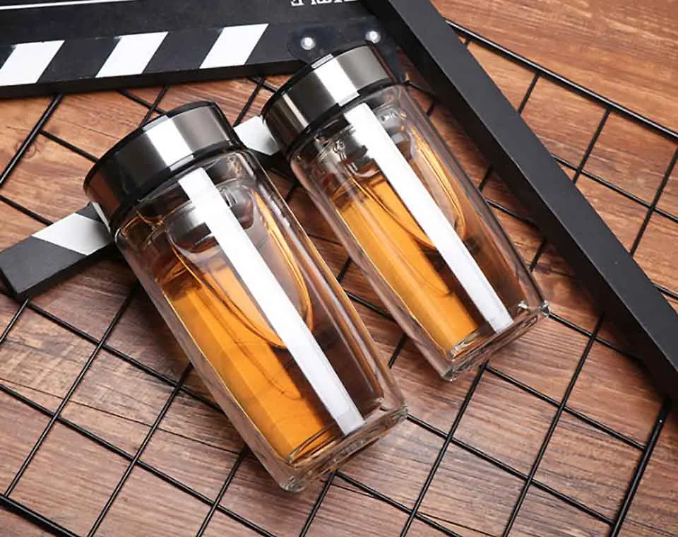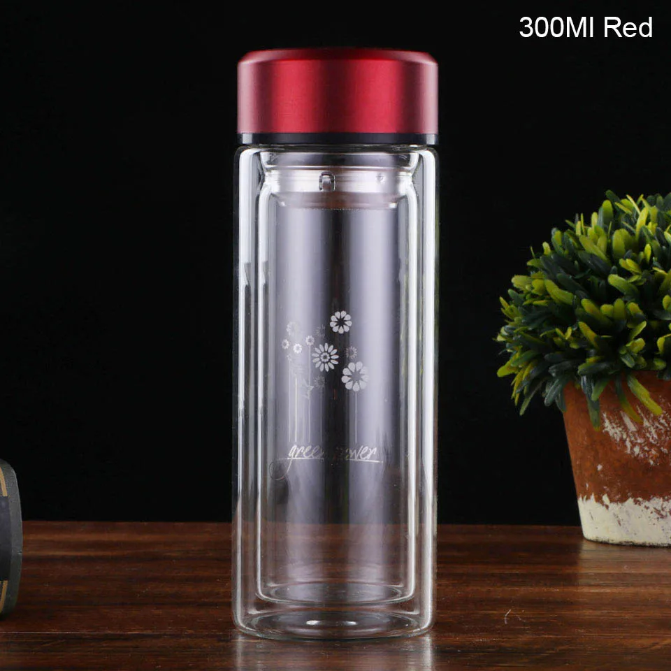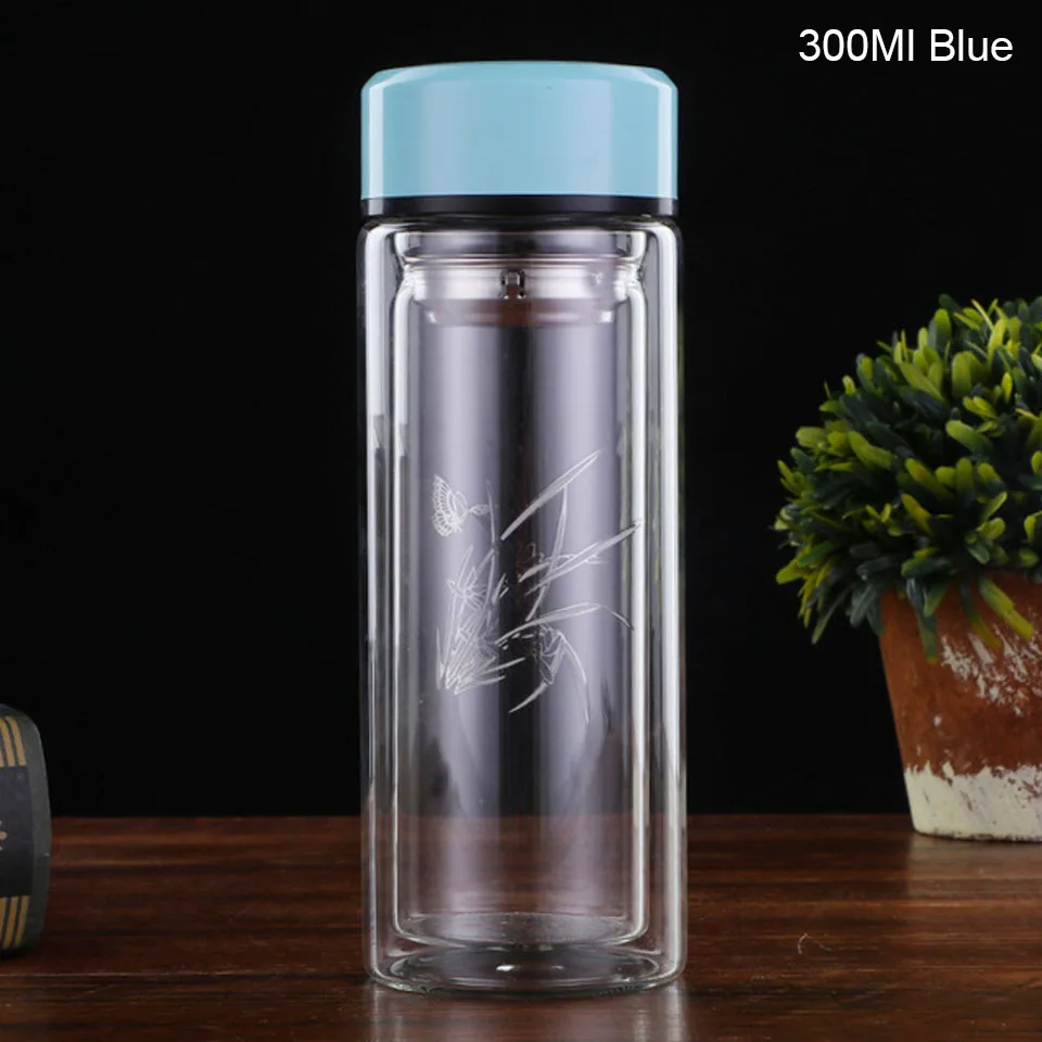 BORREY Double Wall Glass Water Bottle High Borosilicate Glass Tea Bottle With Infuser Filter Sport Portable Sports Water Bottle