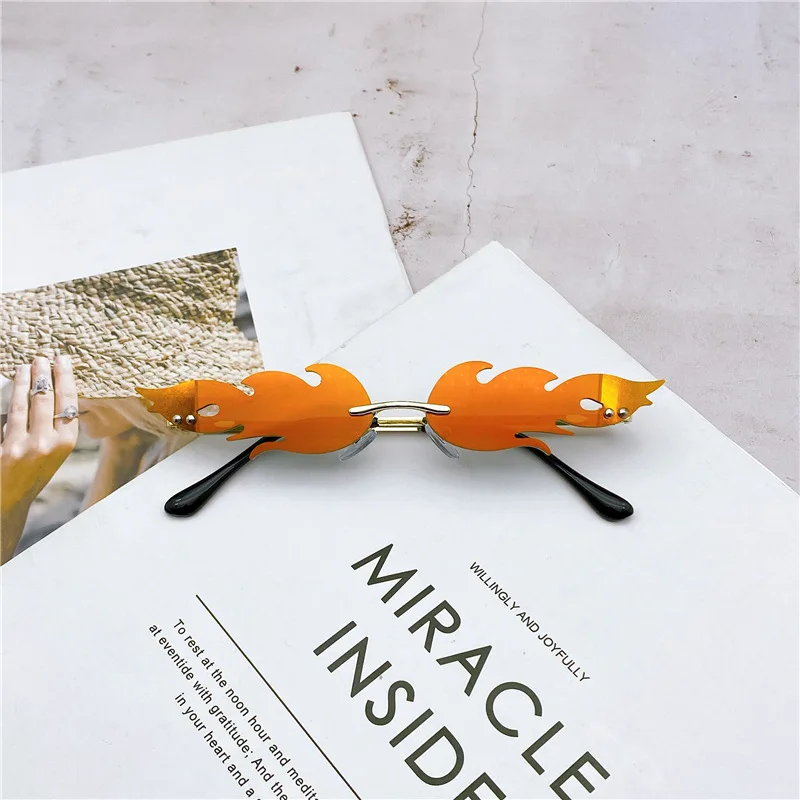 Женские и мужские солнцезащитные очки без оправы Fire Flame, солнцезащитные очки с волнистыми линзами UV 400, трендовые узкие уличные очки, 2019