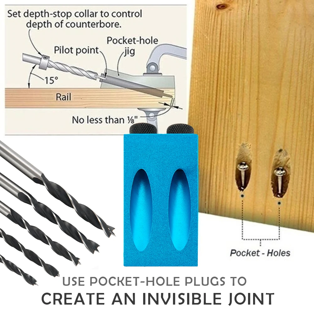 Косая дыра локатор сверла Деревообработка карманное отверстие джиг комплект 15 градусов угол сверла руководство набор Дырокол DIY столярные инструменты