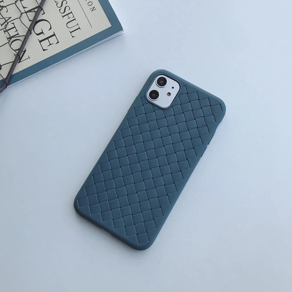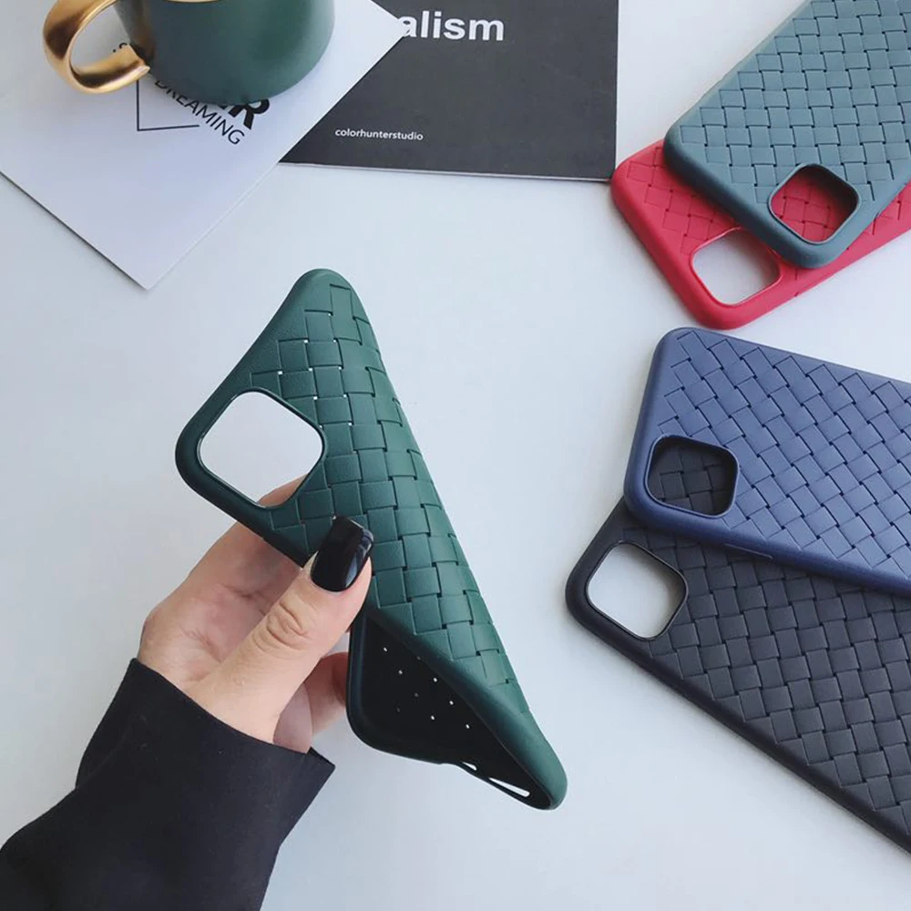 Case For Iphone 11 Pro Max 6 6S 7 8 Plus X Case Weaving Texture PU Leather Dark green Phone Case For Iphone XS MAX XR Cover Capa