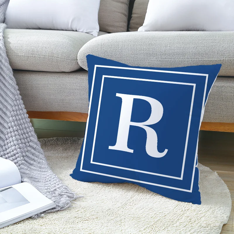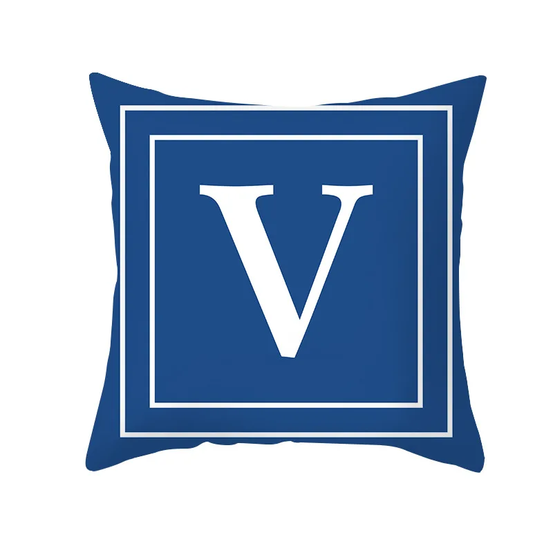 Синяя Подушка с алфавитом, полиэстер, персиковая кожа, темно-синие подушки, Наволочки