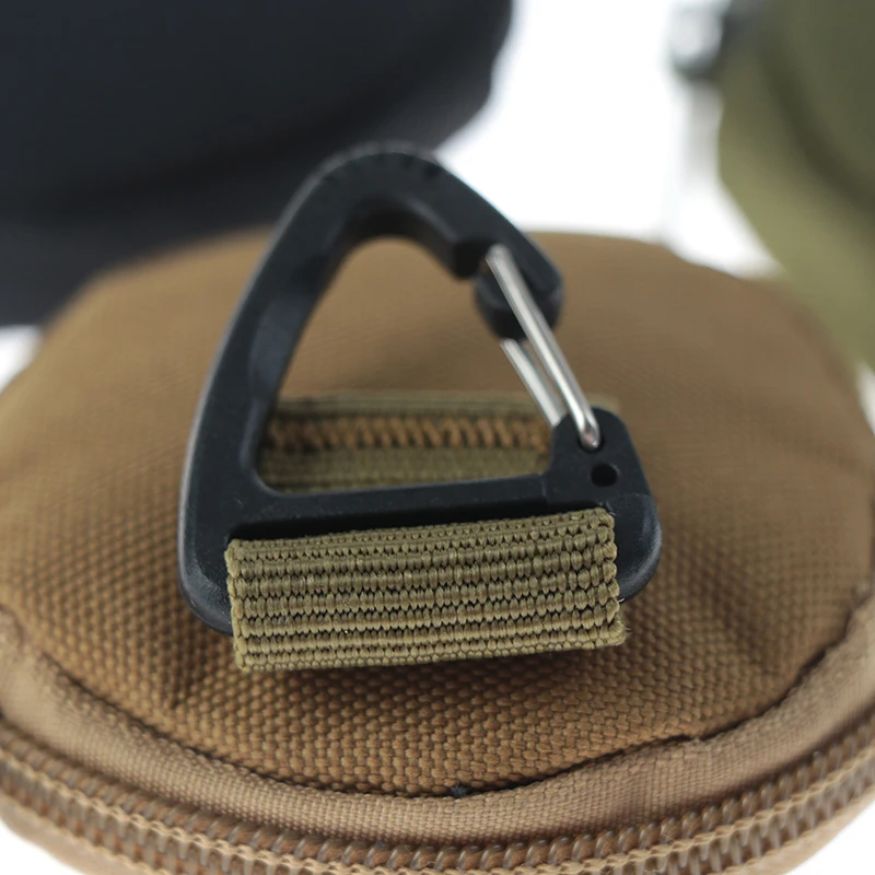 С крючком. Вы можете повесить его на рюкзак, ремень и т. Д.