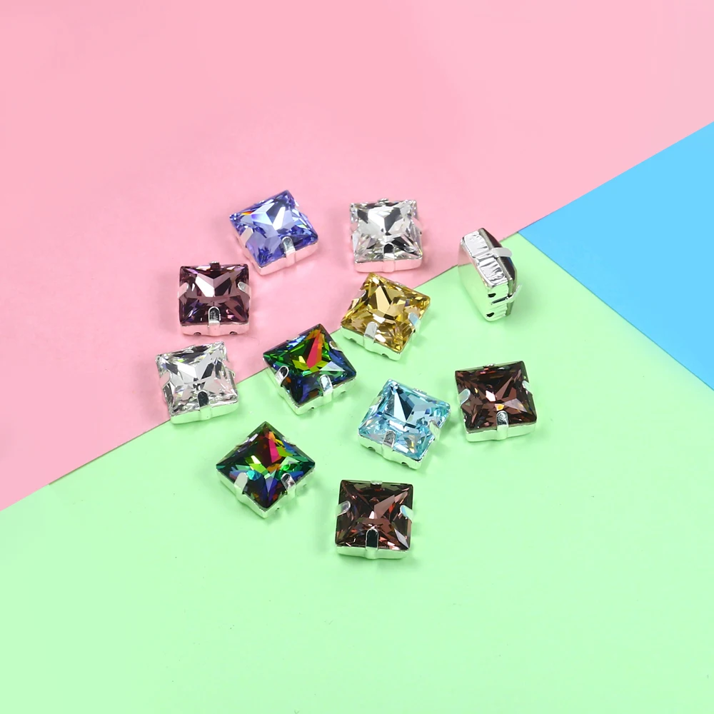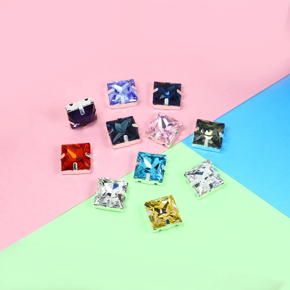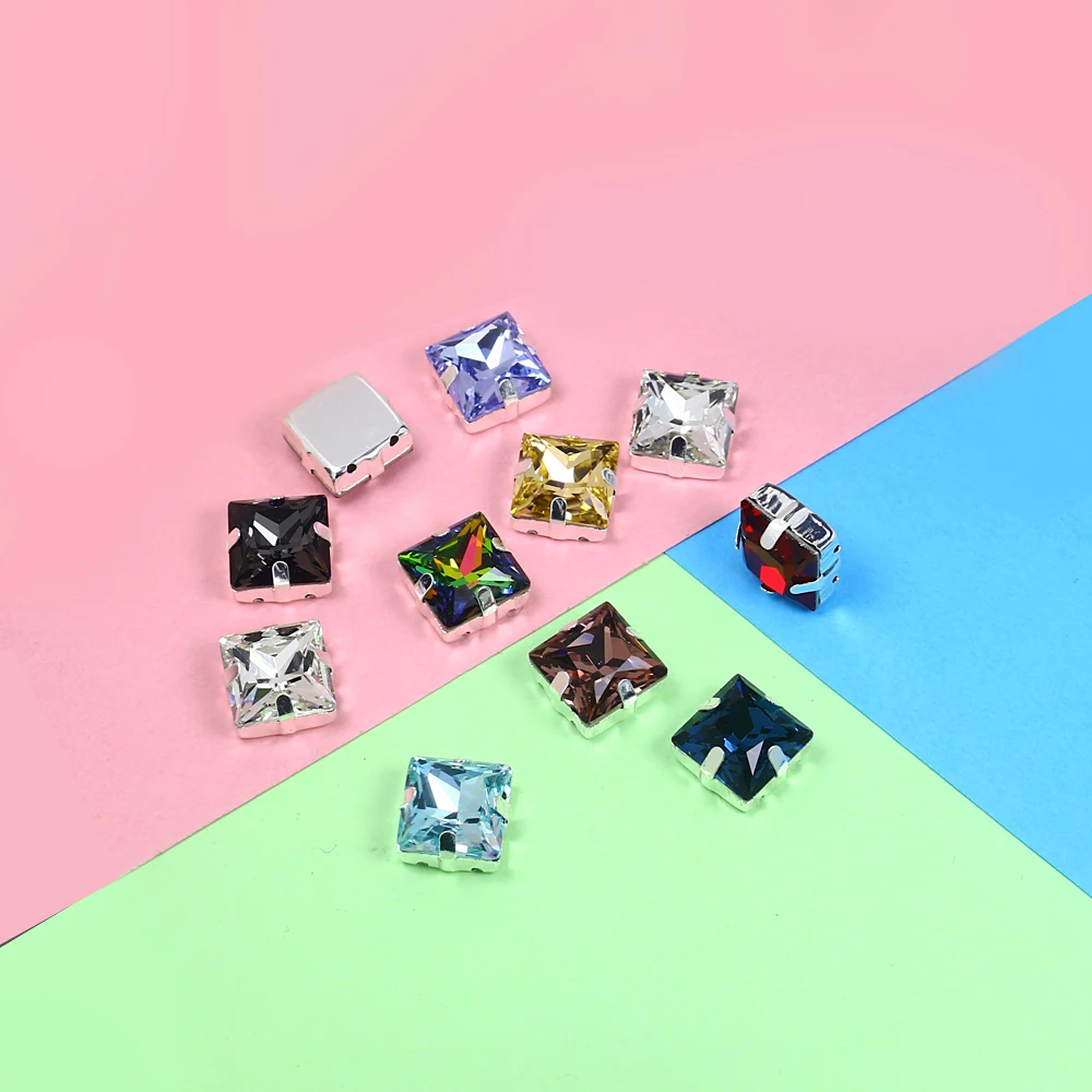 Смешанные Цвета K9 хрустальный Кристалл квадратной формы с серебряными когтями плоские стразы для шитья одежды