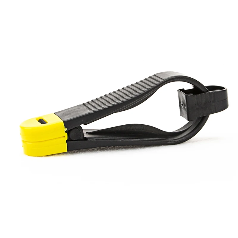 -Леска захватывается между мягкими подушечками с регулируемым натяжением, достигаемым путем перемещения лески внутрь или из челюстей.
