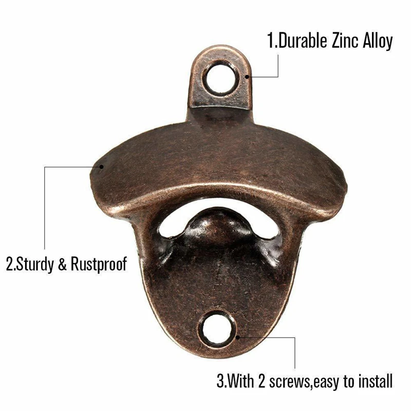 Особенности со всем необходимым Особенности: экологически чистый Тип: Система дистанционного открытия Тип открывалки Ключевые слова: пиво Это придает ему деревенский вид, который идеально подходит для декора в античном стиле. Удобный в использовании: легко Откройте напиток одной рукой. Благодаря безопасному креплению на стену, этот нож прост в использовании с колпачками, выскакивая каждый в одном простом движении. Простота установки: Этот открывалка для бутылок легко крепится на стене с помощью двух гвоздей или винтов. Он также может быть установлен на кусок старого дерева, если вы хотите подчеркнуть его как предмет декора. Применение: идеально подходит для кухни, баров, игровой комнаты, клубного дома, гаража или лодки, которые могут быть украшены в старом фермерском стиле. Уникальный дизайн настенного крепления, удобный, антикоррозийный Подходит для открытия всех типов бутылок с короной. Цвет: красная бронза Материал: цинковый сплав Размер: 8*3*6,5 см Посылка в комплект входит: 12 * открывалки для бутылок 24 * винты Только выше посылка содержание, другие продукты не прилагаются. Примечание: светильник и различные дисплеи могут привести к тому, что цвет товара на картинке немного отличается от реального. Допускается погрешность в измерениях +/- 1-3 см.