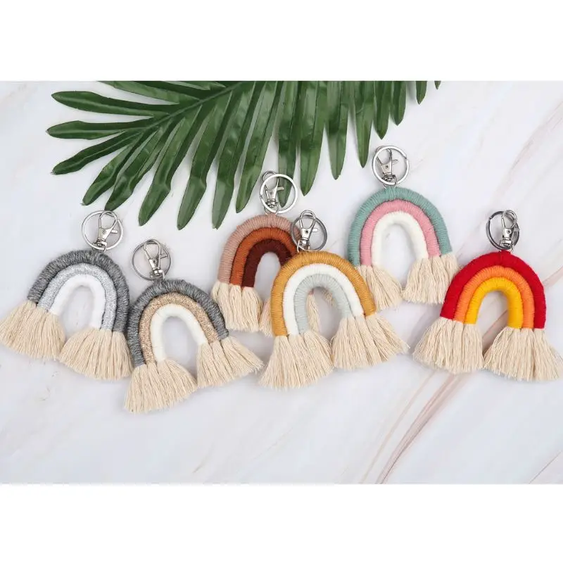 Плетеные радужные Брелки для женщин ручной работы в стиле бохо, брелок для ключей, макраме, сумка для автомобиля, Висячие ювелирные изделия, подарки