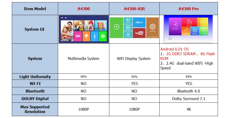 Проектор A4300 может удерживать 200 ”Размер дисплея благодаря продвинутому образованию изображений.