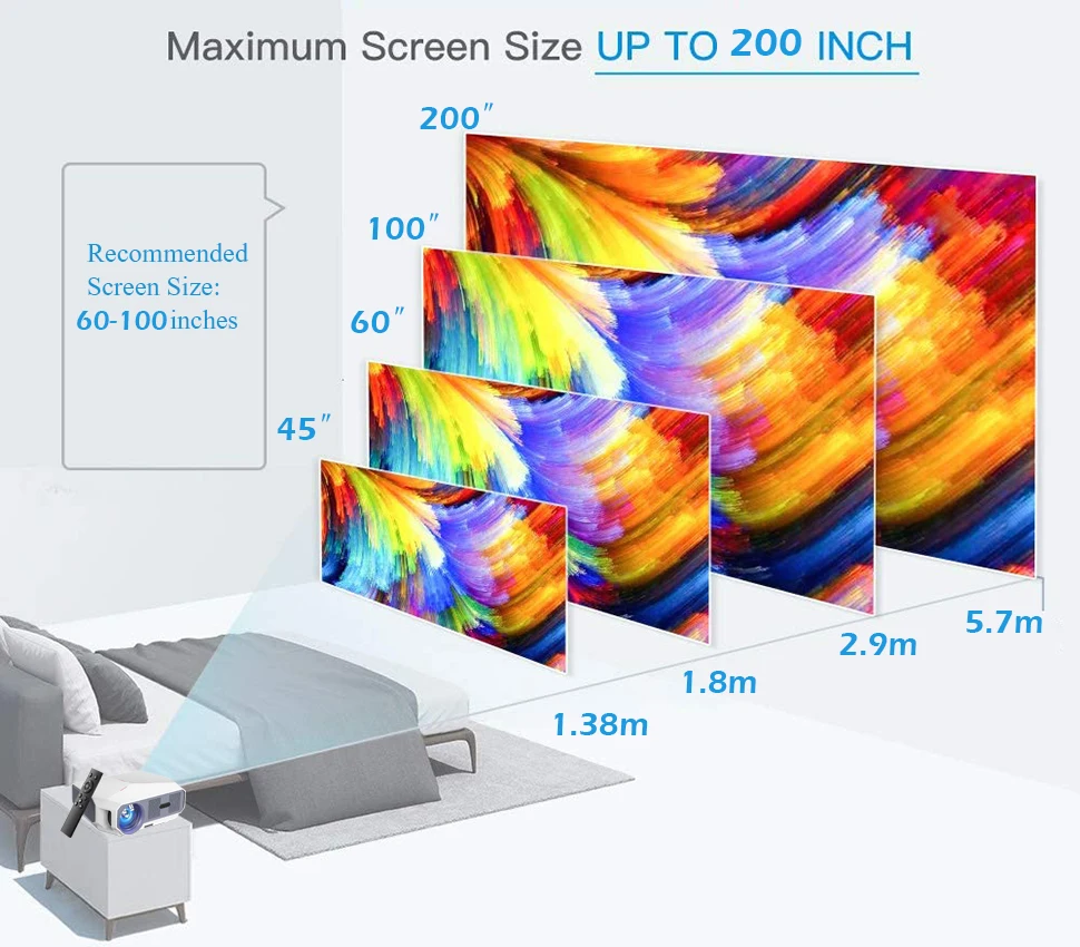 Дальность проекции: 1,38 ~ 5,7 мДиапазон размеров проекции: 45-200 дюймов