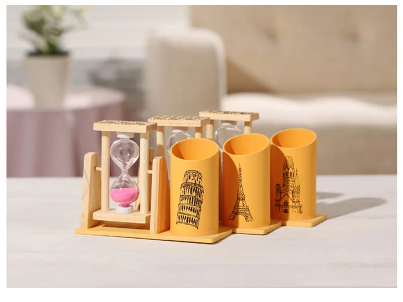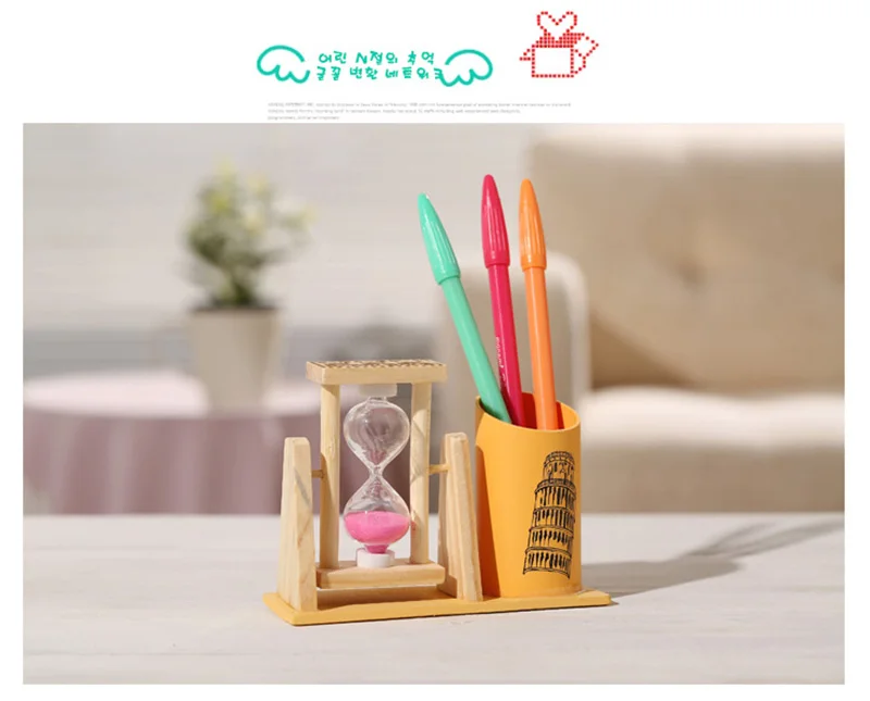 Модный деревянный карандаш с таймером, деревянный держатель для ручки, Офисные аксессуары с песочными часами, лучший подарок