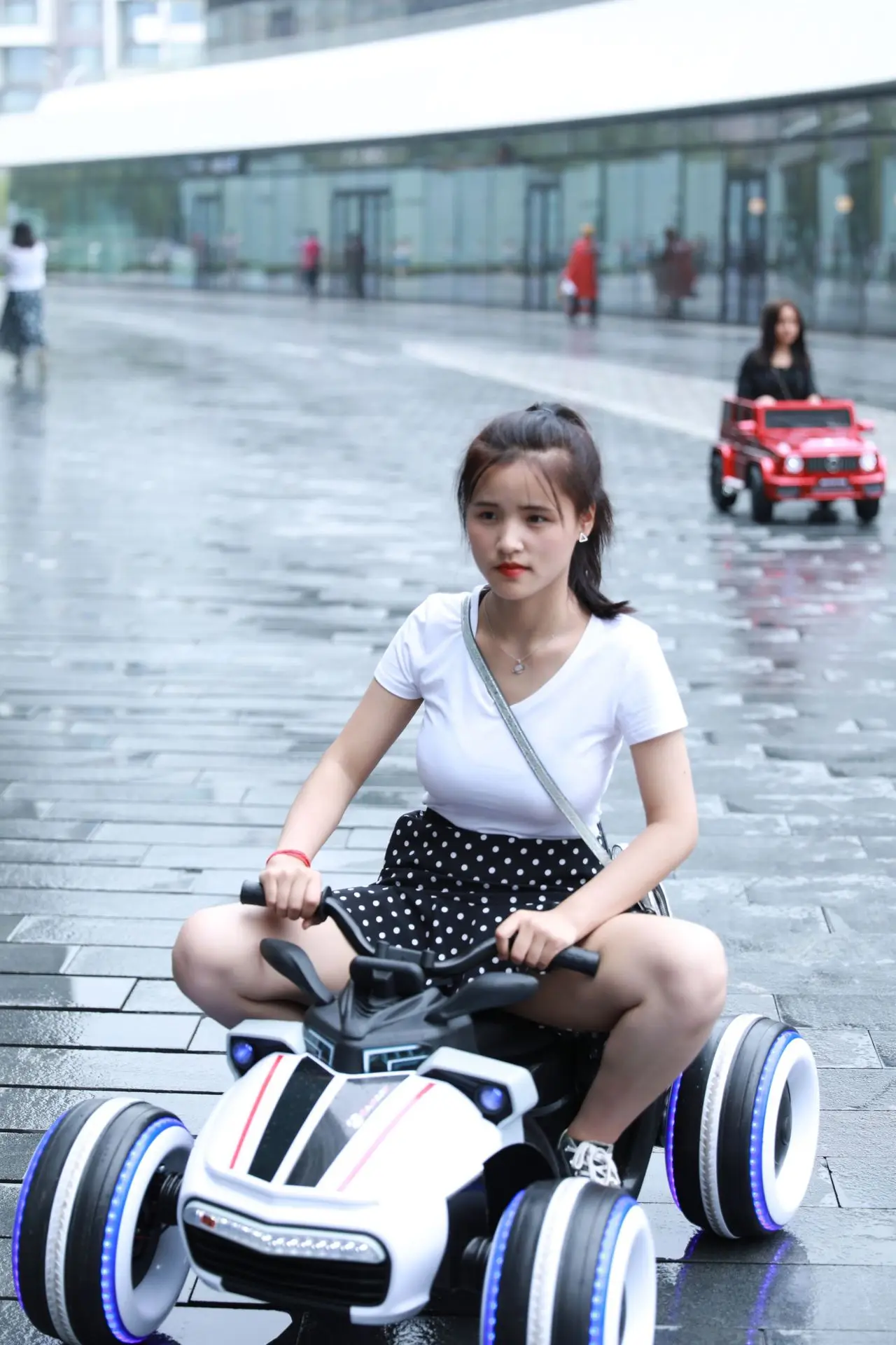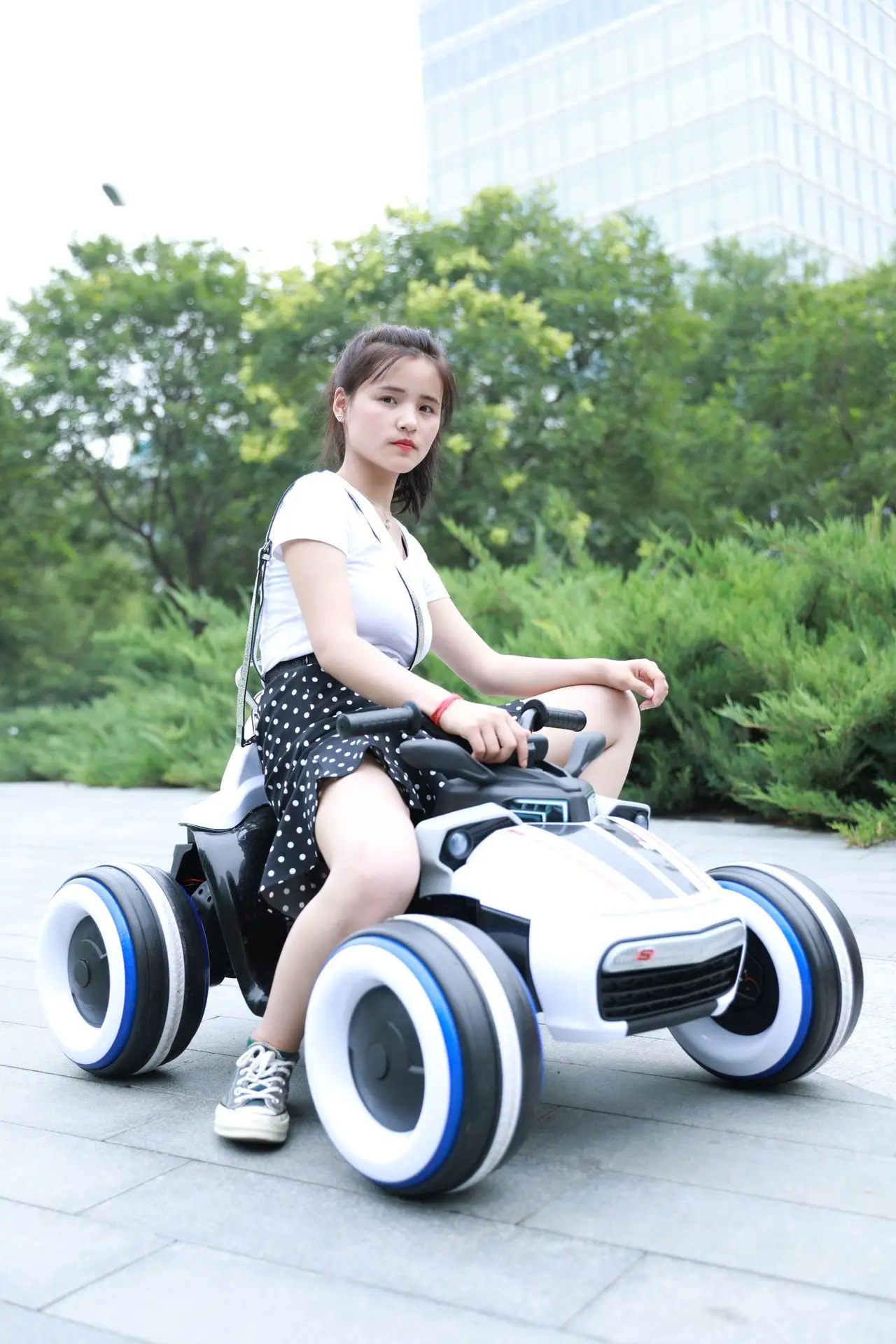 Колеса имеют бесшумные резиновые полосы, чтобы уменьшить шум, создаваемый при контакте с землей, и воспроизводят нескользящий эффект на гладких дорогах.