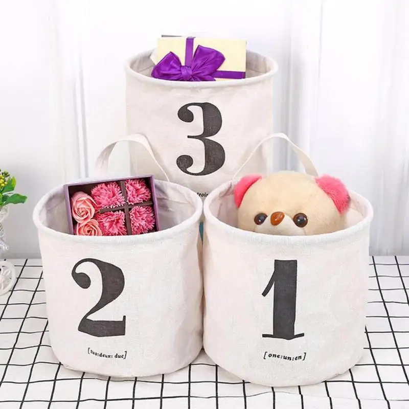 Корзина для хранения из хлопка и льна с цифрами, корзина для хранения, сумка для хранения игрушек, органайзер для белья