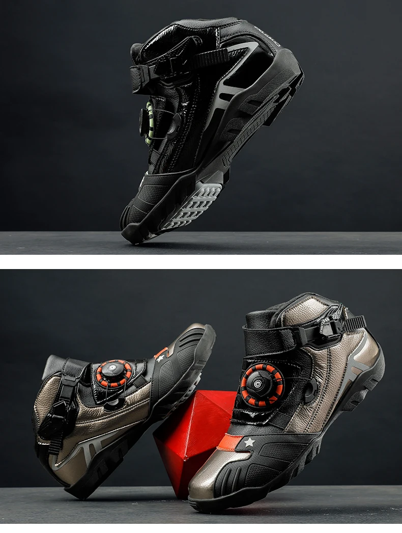 Оригинальные ботильоны в байкерском стиле; Уличная кожаная обувь с микрофиброй для езды на мотоцикле; Короткие ботинки; Спортивные защитные ботинки