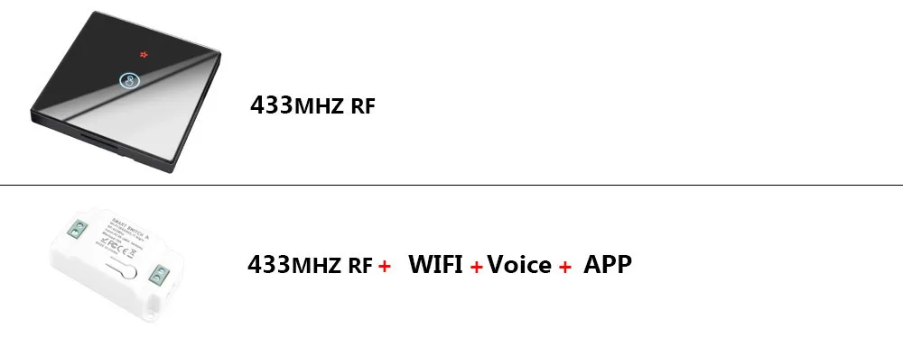 Беспроводной переключатель не имеет функции WIFI, только функция RF433MHZ Контроллер имеет WIFI + RF433MHZ + Приложение + голосовую функцию