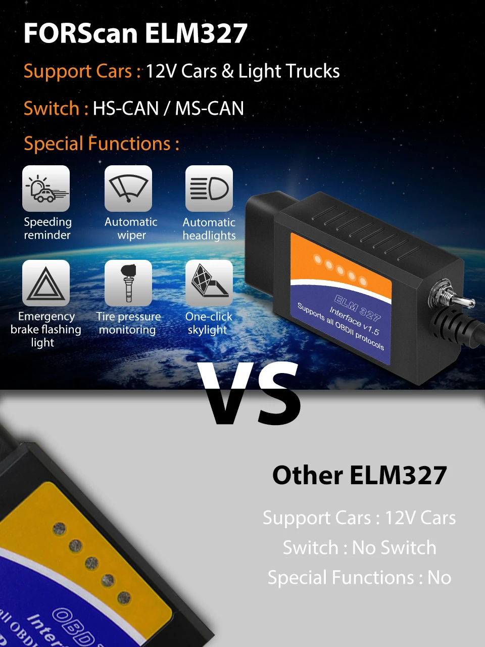С тумблером, этот FORScan ELM327 способен выполнять скрытые функции программирования на автомобилях серии Ford, поддержка Ford, Mazda, Lincoln и Mercury.